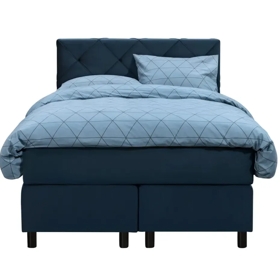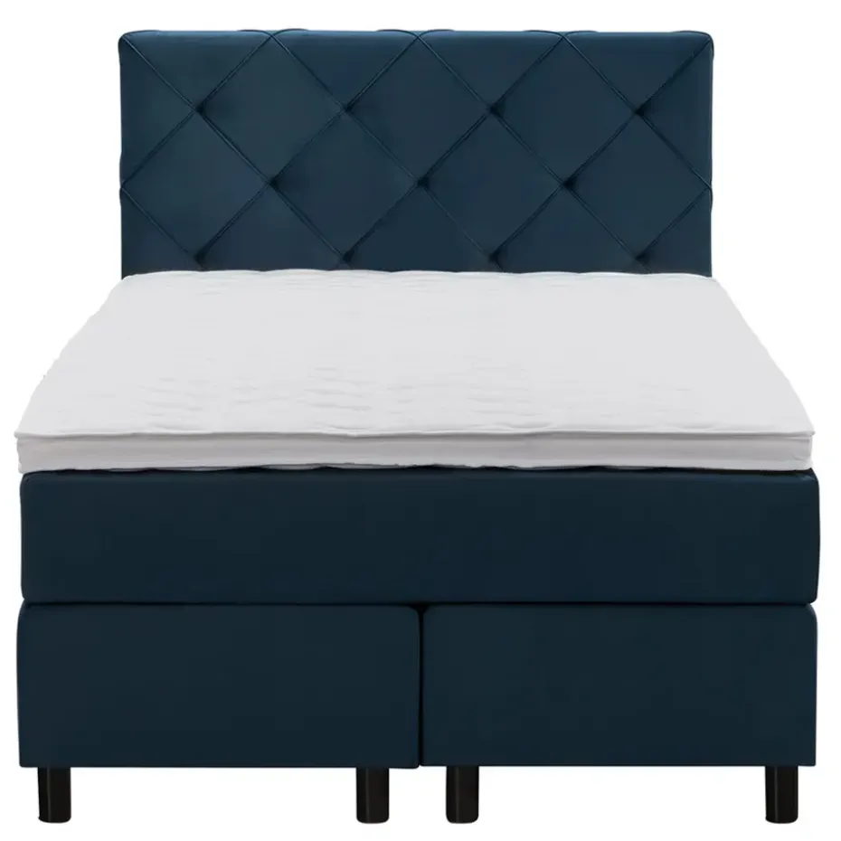 Boxspring Liv is een boxspring met een afmeting van 120×200 cm. Deze prachtige boxspring is bekleed met een velvet blauwe stof en heeft een romantische uitstraling met een geruit hoofdbord. De Liv geruit is uitgerust met een pocketveringmatras en daarnaast ook nog een koudschuim topdekmatras voor extra comfort. Het pocketveringmatras is omkeerbaar, bestaande uit zowel een medium- als een stevige kant. Hierdoor kun je zelf kiezen wat voor jou het meest comfortabel ligt.