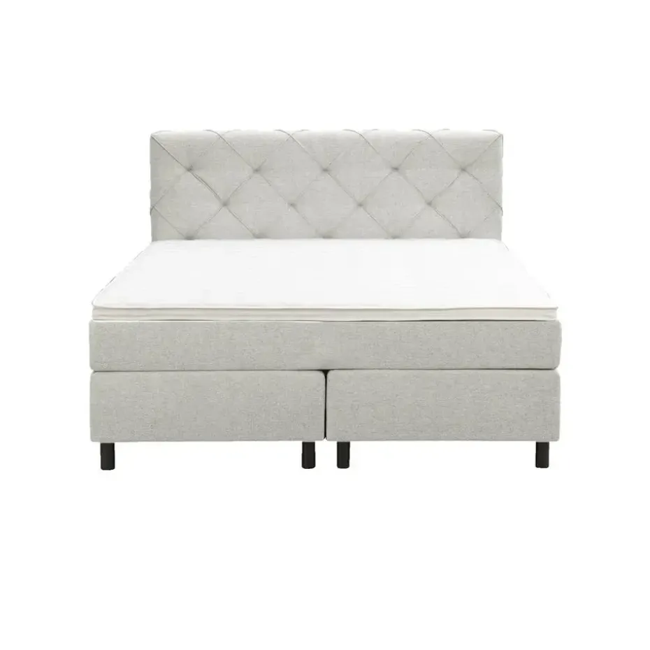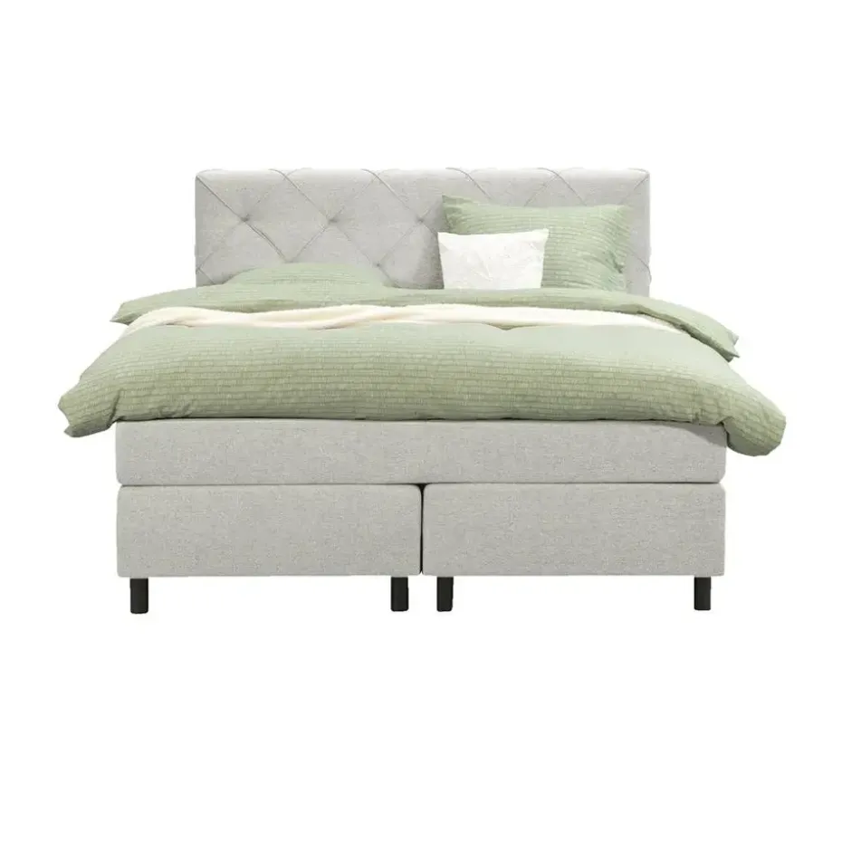 Boxspring Liv is een boxspring met een afmeting van 140×200 cm. Deze prachtige boxspring is bekleed met een fijn geweven ecru stof en heeft een romantische uitstraling met een geruit hoofdbord. De Liv geruit is uitgerust met een pocketveringmatras en daarnaast ook nog een koudschuim topdekmatras voor extra comfort. Het pocketveringmatras is omkeerbaar, bestaande uit zowel een medium- als een stevige kant. Hierdoor kun je zelf kiezen wat voor jou het meest comfortabel ligt.