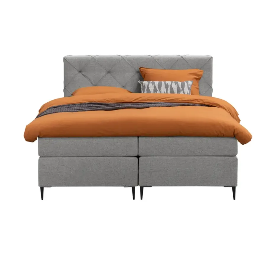 Boxspring Liv is een boxspring met een afmeting van 160×200 cm. Deze prachtige boxspring is bekleed met een fijn geweven lichtgrijze stof en heeft een romantische uitstraling met een geruit hoofdbord. De Liv geruit is uitgerust met twee pocketveringmatrassen en daarnaast ook nog een koudschuim topdekmatras voor extra comfort. Het pocketveringmatras is omkeerbaar, bestaande uit zowel een medium- als een stevige kant. Hierdoor kun je zelf kiezen wat voor jou het meest comfortabel ligt.