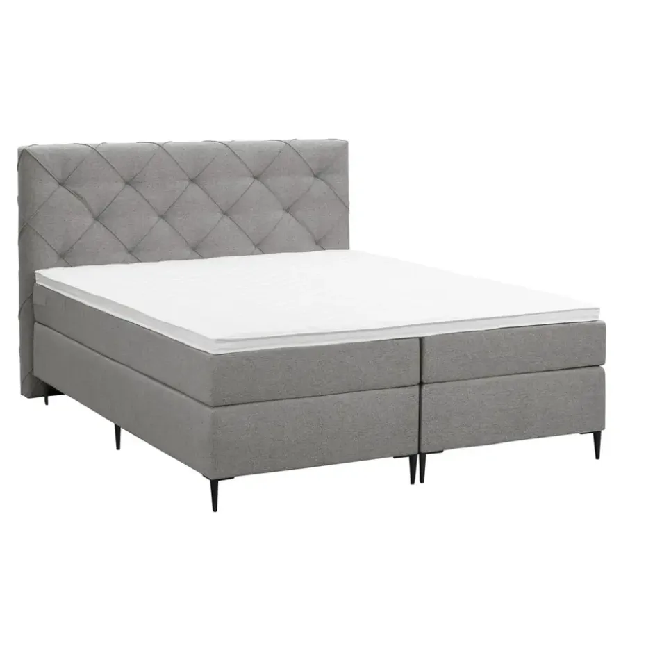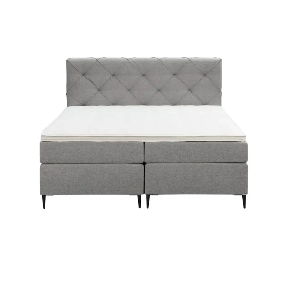 Boxspring Liv is een boxspring met een afmeting van 180×200 cm. Deze prachtige boxspring is bekleed met een fijn geweven lichtgrijze stof en heeft een romantische uitstraling met een geruit hoofdbord. De Liv geruit is uitgerust met twee pocketveringmatrassen en daarnaast ook nog een koudschuim topdekmatras voor extra comfort. Het pocketveringmatras is omkeerbaar, bestaande uit zowel een medium- als een stevige kant. Hierdoor kun je zelf kiezen wat voor jou het meest comfortabel ligt.