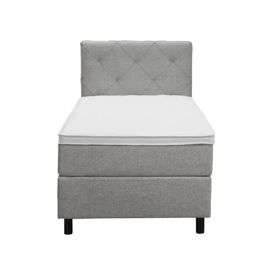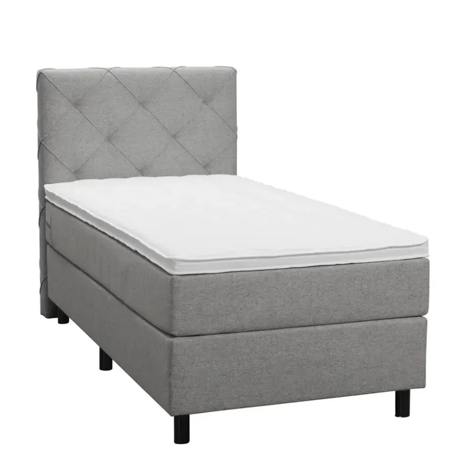 Boxspring Liv is een boxspring met een afmeting van 90×200 cm. Deze prachtige boxspring is bekleed met een fijn geweven lichtgrijze stof en heeft een romantische uitstraling met een geruit hoofdbord. De Liv geruit is uitgerust met een pocketveringmatras en daarnaast ook nog een koudschuim topdekmatras voor extra comfort. Het pocketveringmatras is omkeerbaar, bestaande uit zowel een medium- als een stevige kant. Hierdoor kun je zelf kiezen wat voor jou het meest comfortabel ligt.