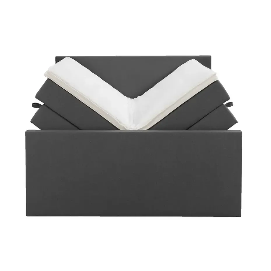 Boxspring met opbergruimte Liv is een boxspring met een afmeting van 140×200 cm. Deze prachtige boxspring is bekleed met een grof geweven antraciete stof en heeft een strakke uitstraling met een egaal hoofd- en voetbord. De Liv egaal is uitgerust met een pocketveringmatras en daarnaast ook nog een koudschuim topdekmatras voor extra comfort. Het pocketveringmatras is omkeerbaar, bestaande uit zowel een medium- als een stevige kant. Hierdoor kun je zelf kiezen wat voor jou het meest comfortabel ligt.
