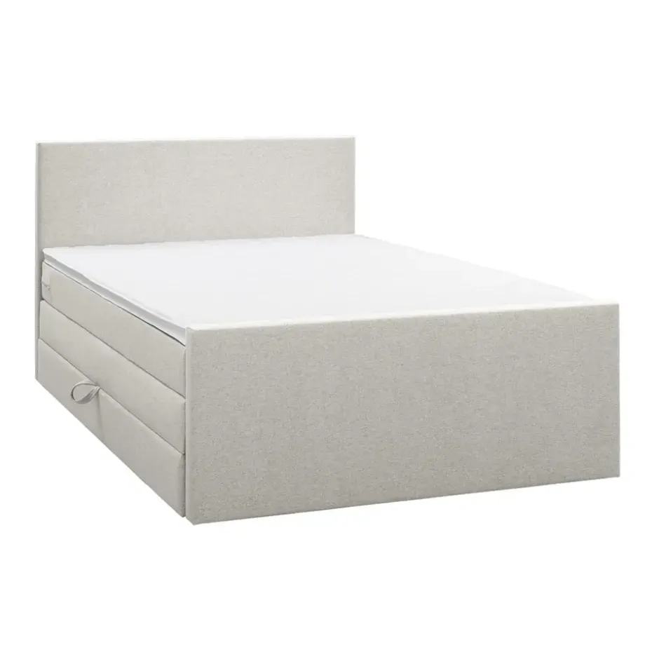Boxspring met opbergruimte Liv is een boxspring met een afmeting van 180×200 cm. Deze prachtige boxspring is bekleed met een fijn geweven ecru stof en heeft een strakke uitstraling met een egaal hoofd- en voetbord. De Liv egaal is uitgerust met twee pocketveringmatrassen en daarnaast ook nog een koudschuim topdekmatras voor extra comfort. Het pocketveringmatras is omkeerbaar, bestaande uit zowel een medium- als een stevige kant. Hierdoor kun je zelf kiezen wat voor jou het meest comfortabel ligt.