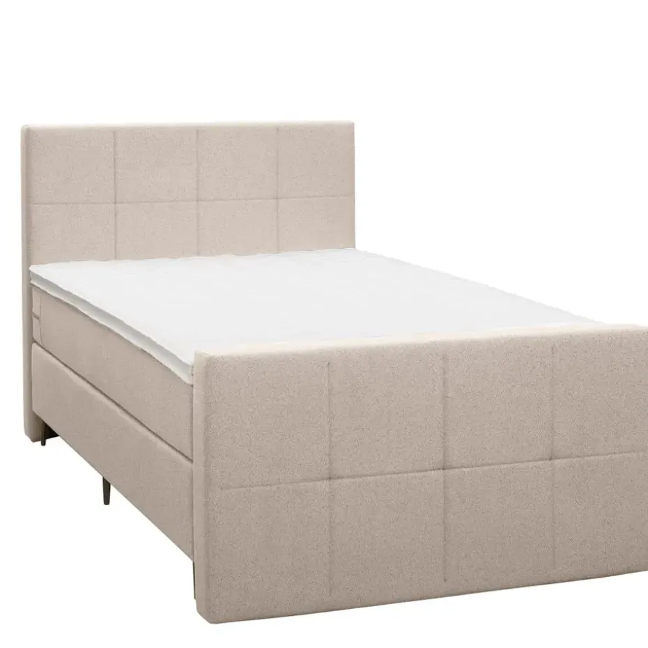 Boxspring Liv is een boxspring met een afmeting van 120×200 cm. Deze prachtige boxspring is bekleed met een grof geweven beige stof en heeft een landelijke uitstraling met een geblokt hoofd- en voetbord. De Liv geblokt is uitgerust met een pocketveringmatras en daarnaast ook nog een koudschuim topdekmatras voor extra comfort. Het pocketveringmatras is omkeerbaar, bestaande uit zowel een medium- als een stevige kant. Hierdoor kun je zelf kiezen wat voor jou het meest comfortabel ligt.