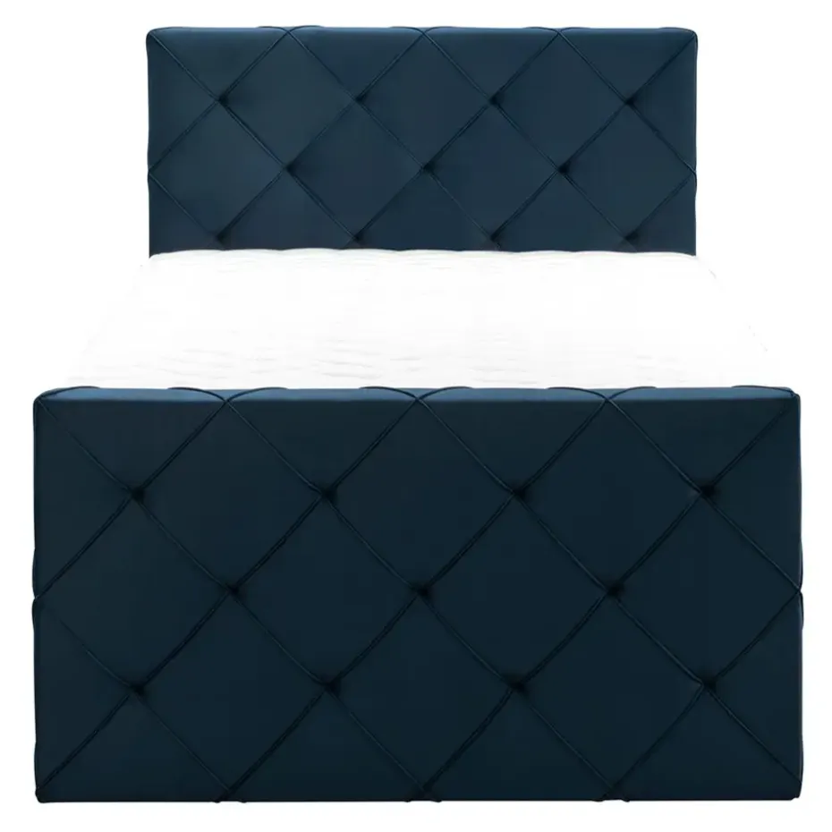 Boxspring Liv is een boxspring met een afmeting van 120×200 cm. Deze prachtige boxspring is bekleed met een velvet blauwe stof en heeft een romantische uitstraling met een geruit hoofd- en voetbord. De Liv geruit is uitgerust met een pocketveringmatras en daarnaast ook nog een koudschuim topdekmatras voor extra comfort. Het pocketveringmatras is omkeerbaar, bestaande uit zowel een medium- als een stevige kant. Hierdoor kun je zelf kiezen wat voor jou het meest comfortabel ligt.