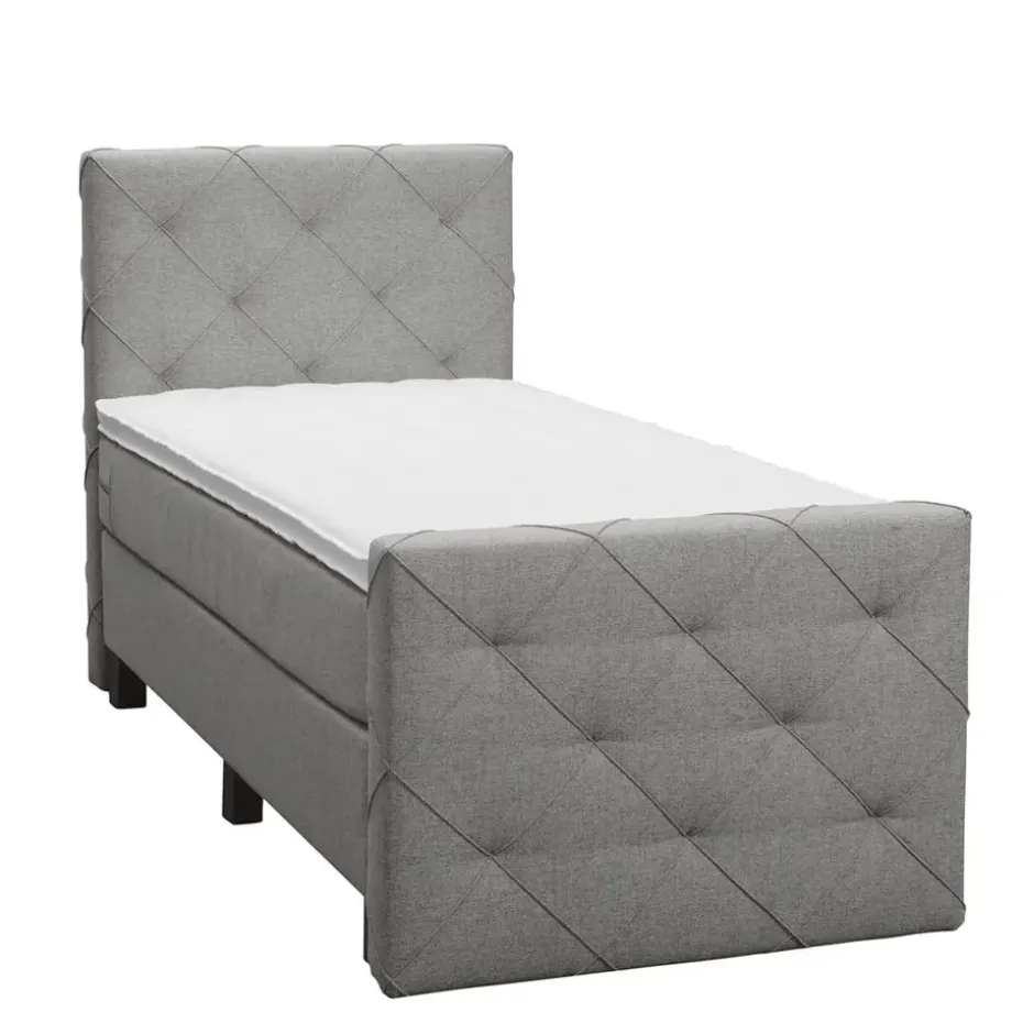 Boxspring Liv is een boxspring met een afmeting van 90×200 cm. Deze prachtige boxspring is bekleed met een fijn geweven lichtgrijze stof en heeft een romantische uitstraling met een geruit hoofd- en voetbord. De Liv geruit is uitgerust met een pocketveringmatras en daarnaast ook nog een koudschuim topdekmatras voor extra comfort. Het pocketveringmatras is omkeerbaar, bestaande uit zowel een medium- als een stevige kant. Hierdoor kun je zelf kiezen wat voor jou het meest comfortabel ligt.