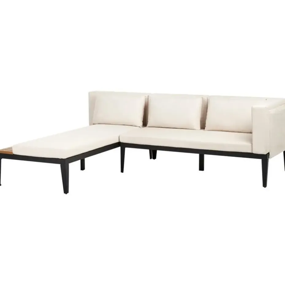 Belangrijkste eigenschappen: Breed, comfortabel zitvlak, De natuurlijke houtnerven en knoesten maken elk stuk uniek, Robuust frame, Om de kwaliteit te behouden, moet het beschermd worden tegen water en regen, Verwijderbare kussenhoezen