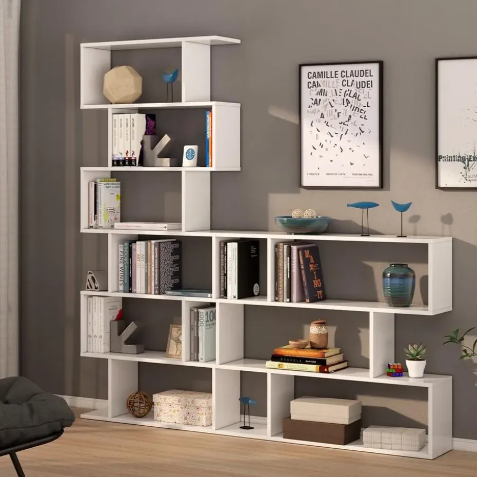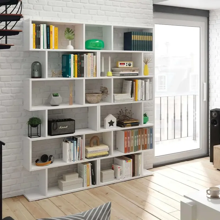 Deze boekenkast met 6 compartimenten biedt je de mogelijkheid om veel spullen, zoals boeken of decoratieve objecten, op te bergen zonder de vloerruimte in beslag te nemen. De eigentijdse stijl past bij alle interieurstijlen.Productkenmerken:Boekenkast met 6 compartimenten.Spaanplaten met een melamine oppervlak. Compartimenten van 30 cm hoog en 59 cm breed, ABS-voetjes tegen geluid en krassen.Verkrijgbaar in 2 kleuren: Canadese eik/ Hoogglans wit.Afmetingen van het product:Lengte 80 cm x Breedte 24 cm x Hoogte 192 cm – Nettogewicht: 27,8 kg.Afmetingen van het pakket:Pakket nr. 1: Lengte 51 cm x Hoogte 147 cm x Diepte 8 cm – Bruto gewicht: 28,3 kg.