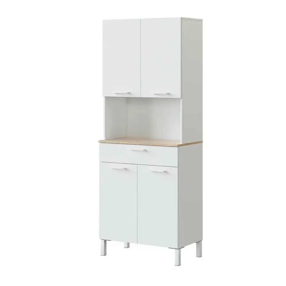 Ontdek onze Keukenbuffet met 4 deuren + 1 lade en 1 open compartiment de vele opbergmogelijkheden stellen je in staat om de elementen van je keuken te organiseren, voedsel, servies, keukengerei en andere items naar keuze op te bergen. Het eigentijdse ontwerp past bij veel keukens.Productkenmerken:Keukenbuffet met 4 deuren + 1 lade en 1 open compartiment.Spaanplaten met melamine oppervlak.4 deuren met scharnieren en lade met metalen geleiders, poten van wit getint ABS.Afmetingen van het product:Lengte: 72 cm x Breedte: 40 cm x Hoogte: 186 cm – Netto gewicht: 45,28 kg.Afmetingen van het pakket:Pakket nr. 1: Lengte 52,2 cm x Hoogte 210 cm x Diepte 10,2 cm – Bruto gewicht: 46,2 kg.