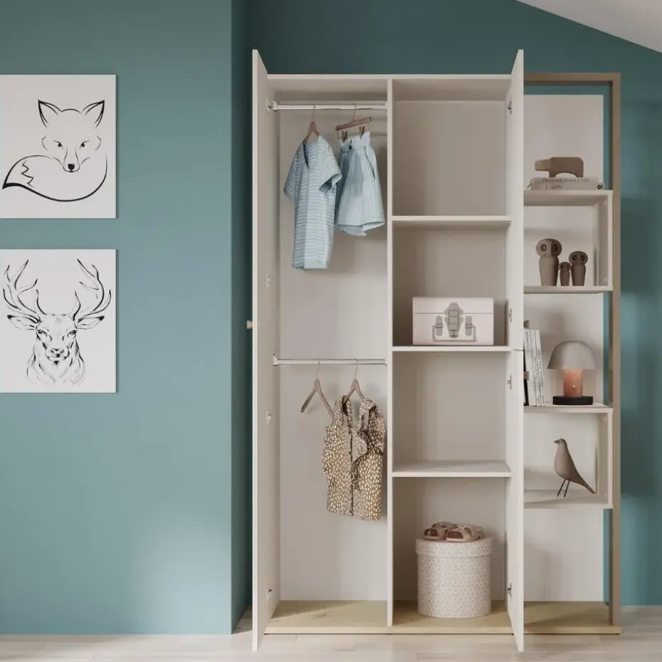 - Grote opbergruimte zonder de kamer te overladen, veelzijdige indeling (zijde met legplanken en zijde met kledingroede), robuust en duurzaam, gemakkelijk schoon te maken.