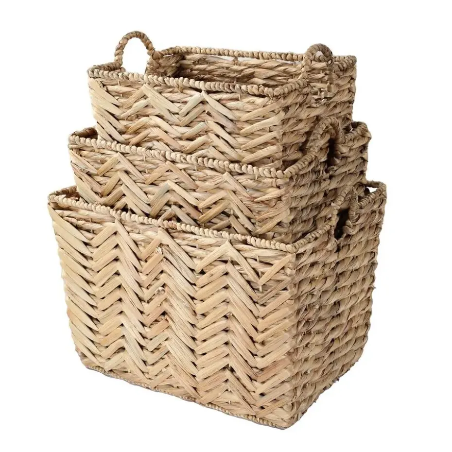 Ontdek deze waterhyacint mand! Het stelt je in staat om je spullen naar wens te organiseren. Het middelgrote formaat is perfect voor elke ruimte, waar je gemakkelijk je objecten en benodigdheden kunt opbergen. Het strakke ontwerp past in elke kamer, of het nu in een kleedkamer of woonkamer is, deze mand voegt een natuurlijk tintje toe aan je interieur.Productkenmerken:Fantasievol vlechtwerk.Metalen structuur.2 ronde handgrepen.Productafmetingen: Lengte 46 cm x Breedte 33 cm x Hoogte 32 cm – Nettogewicht: 1,7 kg.Verpakkingsafmetingen: Pakket nr. 1: Lengte 54 cm x Hoogte 43 cm x Diepte 40 cm – Bruto gewicht: 6,5 kg.