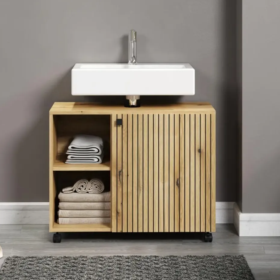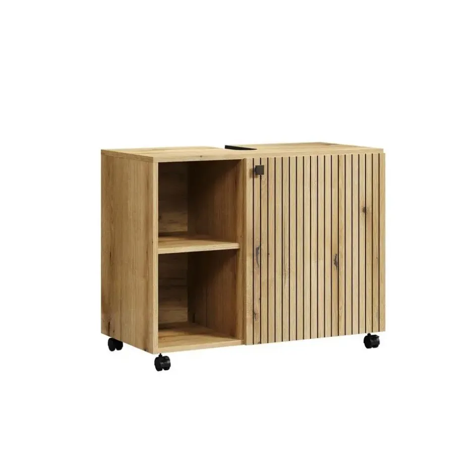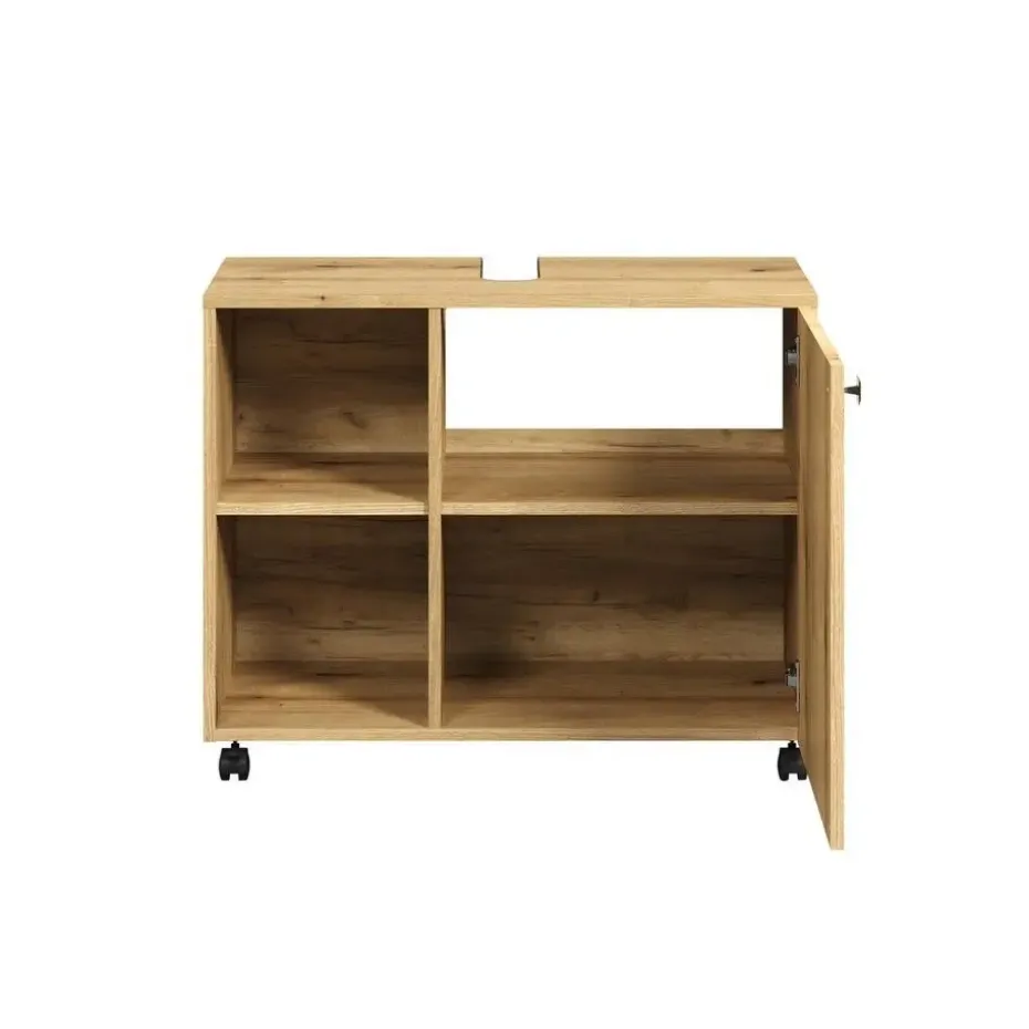 - Waschbeckenschrank mit Rollen, 1 Tür, 2 Nischen und 2 Einlegeböden.