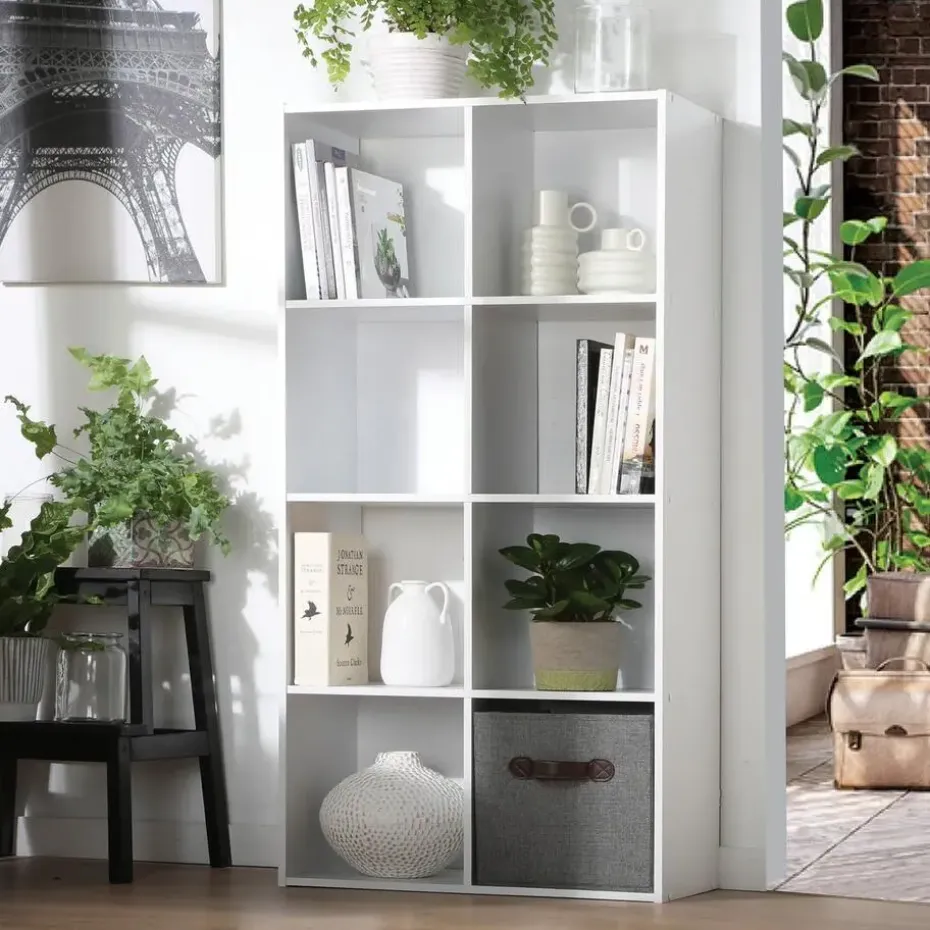 De opbergkast met 8 open vakken is de ideale keuze voor wie op zoek is naar een praktische en functionele oplossing om hun opbergruimte te optimaliseren. Met een hoogte van 120 cm biedt deze kast de perfecte combinatie van opslagruimte en ruimteoptimalisatie. De 8 open vakken bieden voldoende ruimte om uw spullen praktisch en toegankelijk te organiseren. Of het nu gaat om het opbergen van boeken, decoratieve voorwerpen, opgevouwen kleding of opbergdozen, deze veelzijdige kast past zich aan uw behoeften aan. Laat de rommel niet de overhand nemen. Organiseer uw spullen praktisch en esthetisch met deze veelzijdige opbergkast en geniet van een geoptimaliseerde ruimte in uw interieur. Kenmerken: Binnenafmetingen van de vakken: L29 x B28 x H29 cm Gemaakt van stevige spaanplaten met een dikte van 12 mm. Verkrijgbaar in eiken, wit of zwart. Afmetingen: L62 x B29,5 x H123 cm. Gewicht: 19,6 kg.