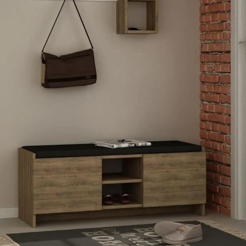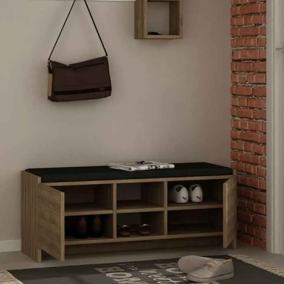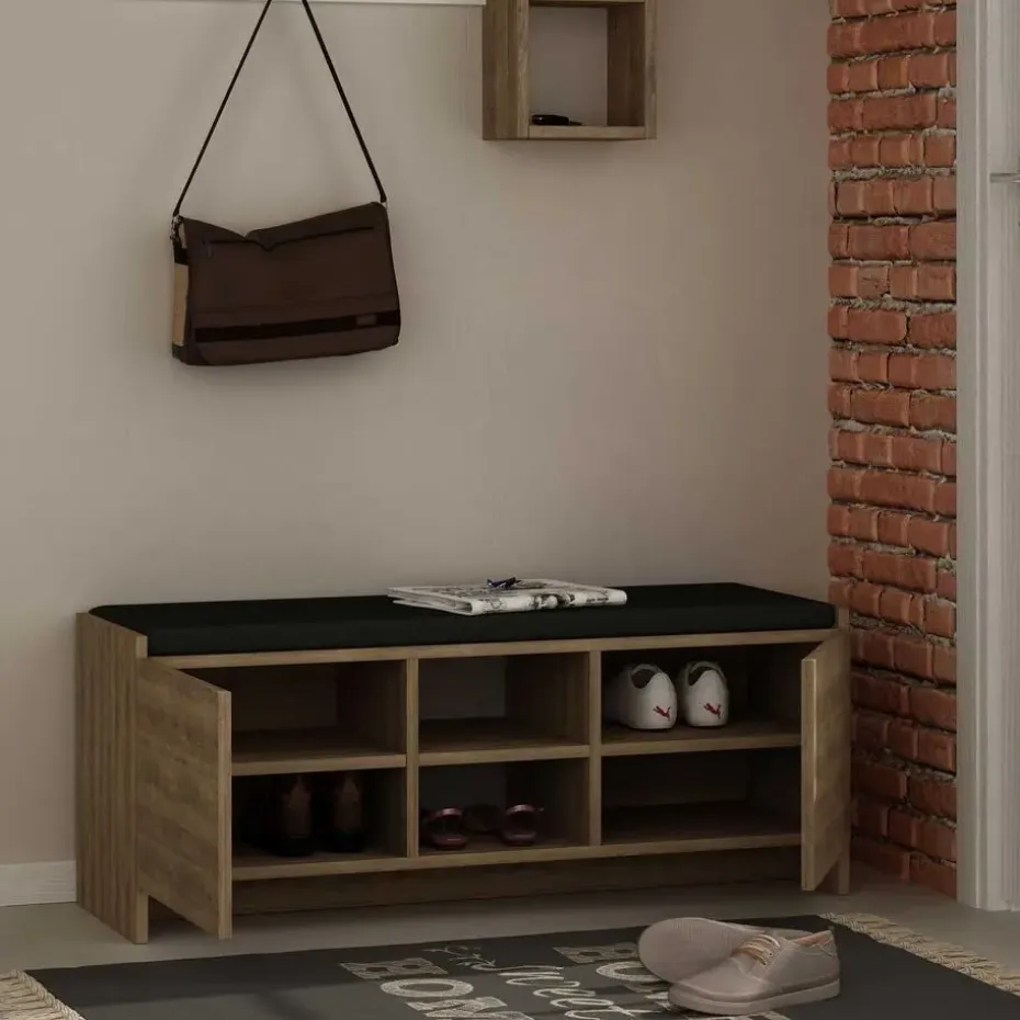 Productkenmerken: Elke plank heeft een hoogte van 13,5 cm. Gecertificeerd met het FSC-label, wat aangeeft dat het product voor 100% is gemaakt van gerecycled hout uit duurzaam beheerde bossen. Onze schoenenkast kan eenvoudig aan de muur worden bevestigd, waardoor vloerruimte wordt bespaard. Productafmetingen: breedte 37 cm x lengte 110 cm x hoogte 43 cm – Nettogewicht: 27,81 kg. Plankhoogte: 13,5 cm. Verpakkingsafmetingen: Pakket nr. 1: lengte 143 cm x hoogte 39,5 cm x diepte 19,5 cm – Brutogewicht: 28,68 kg.