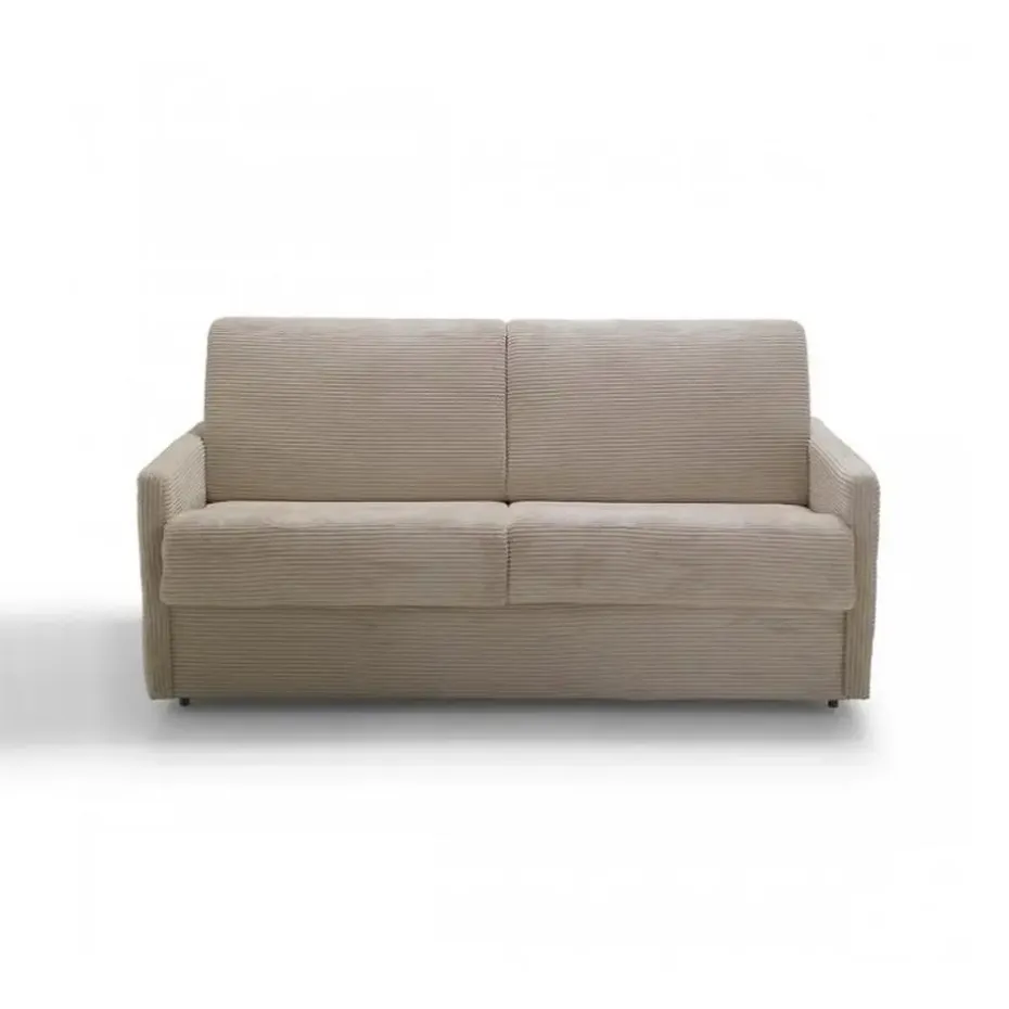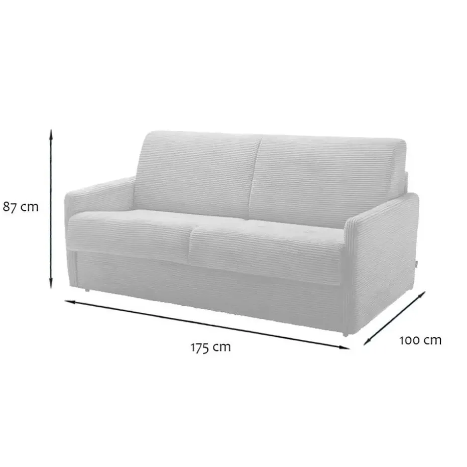 Productkenmerken: Omvormbare 3-zitsbank met fluwelen ribstof Lincoln 03 ivory. Snelle opening. Slaapplaats van 140×190 cm. Rugleuning met kussenopbergruimte. Verwijderbare armleuningen. Afneembare zittingen. VULLING: Polyurethaanschuim met verschillende dichtheden (zitkussendichtheid: 30 kg/m3, rugkussendichtheid: 18 kg/m3). BEDSYSTEEM: Dubbel opvouwbaar elektro-gelast bedframe met een matras van 14 cm hoogte in jacquard/stretch stof. Productafmetingen: Lengte 175 cm x breedte 100 cm x hoogte 87 cm – Nettogewicht: 90 kg. Pakketafmetingen: Pakket nr. 1: Lengte 162 cm x hoogte 89 cm x diepte 102 cm – Brutogewicht: 81 kg. Pakket nr. 2: Lengte 18 cm x hoogte 62 cm x diepte 102 cm – Brutogewicht: 11 kg. Totaal brutogewicht: 92 kg.