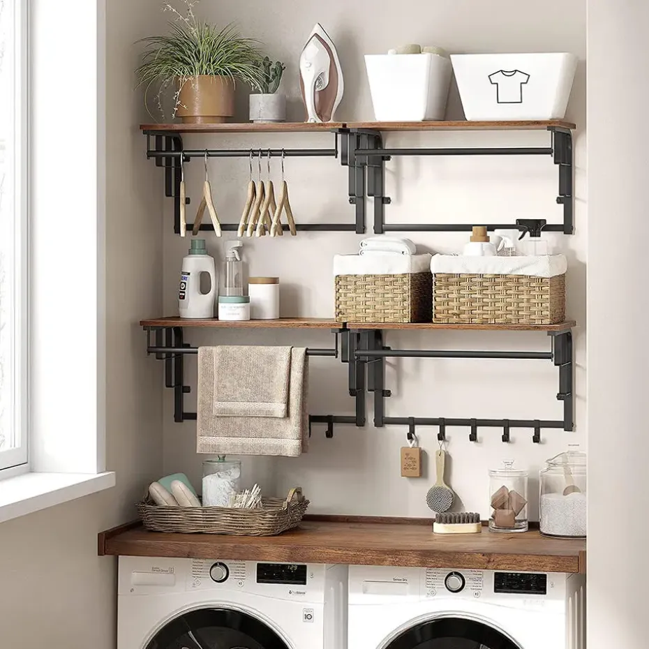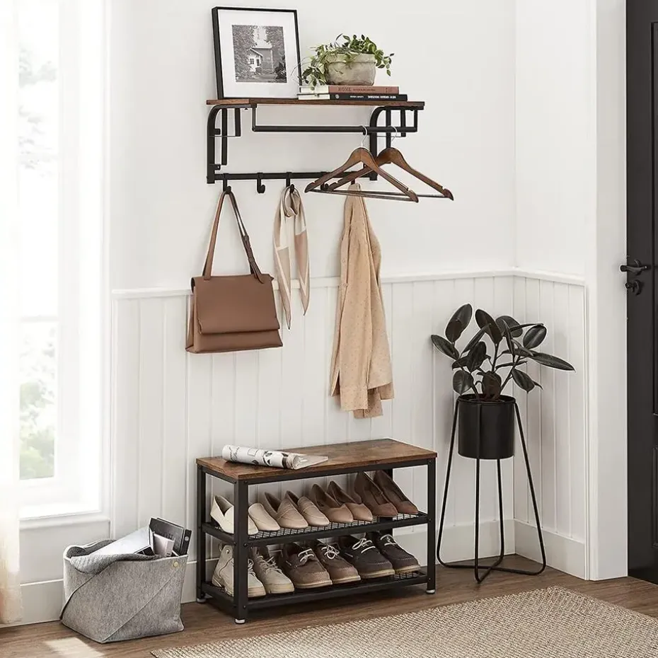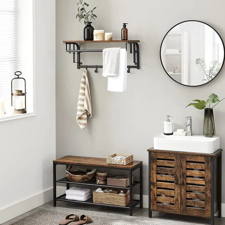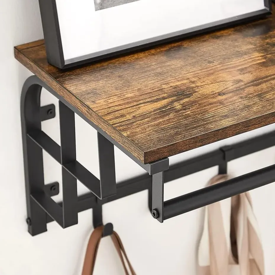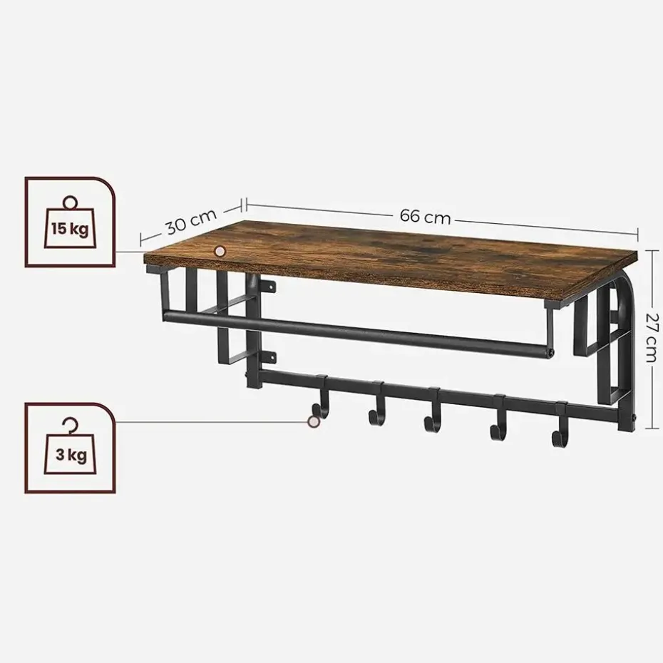Ontdek onze wandkapstok met 5 verwijderbare haken en een stang – L66 cm. Deze wandkapstok is ideaal voor kleine ruimtes omdat hij geen vloerruimte in beslag neemt. De 5 verwijderbare haken stellen u in staat om het gebruik ervan aan te passen aan uw behoeften. De stang is geschikt voor het ophangen van kledinghangers. Het industriële ontwerp past bij elke interieurstijl. Productkenmerken: Hoofdmateriaal: Spaanplaat, Staal. 5 verwijderbare haken. Stang. Productafmetingen: Lengte 66 cm x Hoogte 27 cm x Diepte 30 cm – Nettogewicht: 3,6 kg. Verpakkingsafmetingen: Verpakking nr. 1: Hoogte 74,5 cm x Breedte 37 cm x Diepte 6,5 cm – Brutogewicht: 4,4 kg.