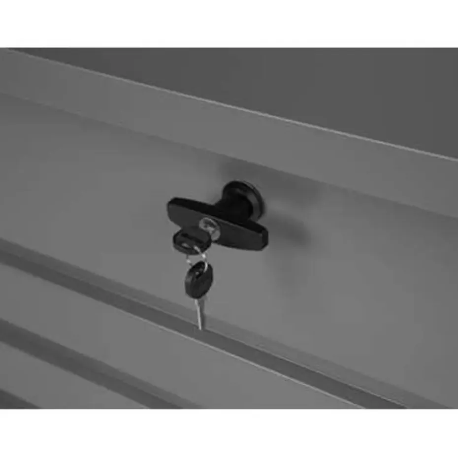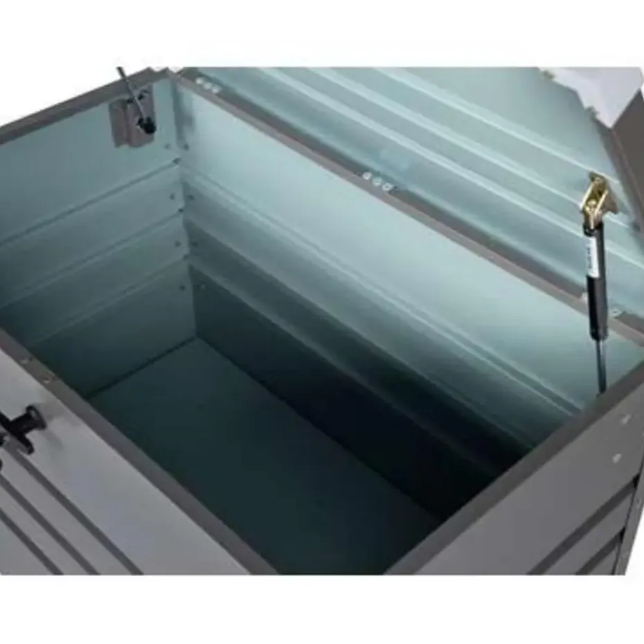 Belangrijkste eigenschappen: Klassiek design, Stabiele en duurzame constructie, Speciaal gemaakt voor gebruik buitenshuis, UV-bestendigheidsklasse, 100% waterdicht, Met sleutel afsluitbaar voor veilig bewaren, Stabiel op ongelijke oppervlakken, Functionele, grote opbergruimte