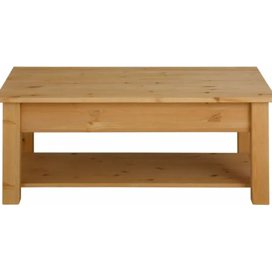 Deze salontafel met opbergmeubel is een prachtig eigentijds meubel in landelijke stijl, gemaakt van gecertificeerd massief grenenhout. Het ontwerp is solide en eenvoudig maar toch klassiek, en elk element zal op natuurlijke wijze passen en ook gemakkelijk harmoniëren met de bestaande levensstijl.