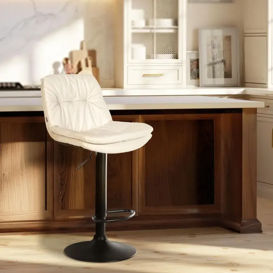 Het frame van de kruk en de modieuze bekleding geven de kruk een elegante uitstraling. De zitting is bekleed met onderhoudsvriendelijk kunstleer. Het metalen frame is in hoogte verstelbaar en de 360 graden draaifunctie zorgt voor veel bewegingsvrijheid.