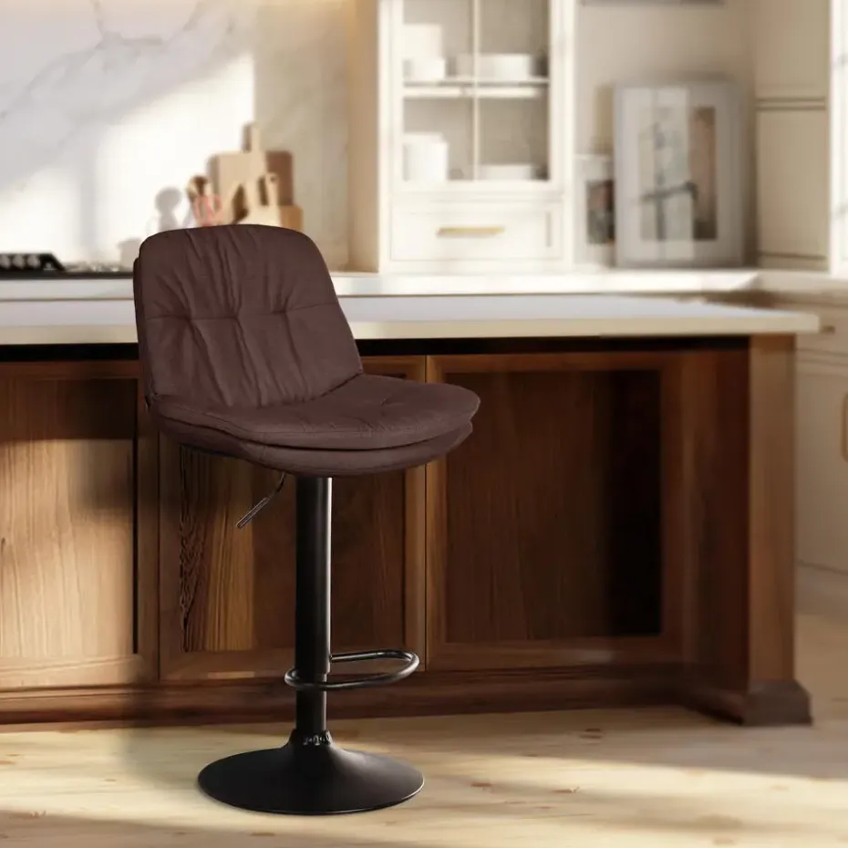 Het frame van de kruk en de modieuze bekleding geven de kruk een elegante uitstraling. De zitting is bekleed met slijtvaste stof van hoge kwaliteit. Het metalen frame is in hoogte verstelbaar en de 360 graden draaifunctie zorgt voor veel bewegingsvrijheid.