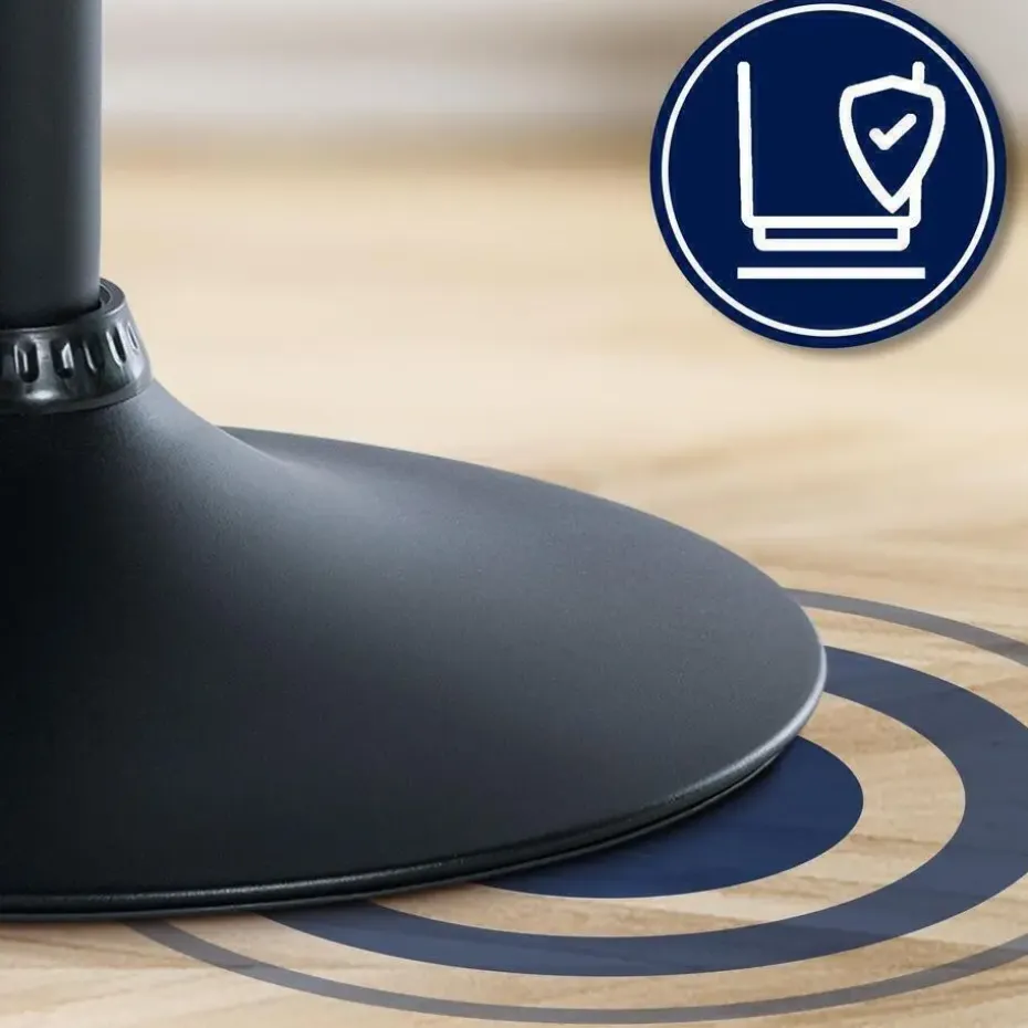 Het stevige metalen frame biedt een veilige stand en een draagvermogen tot 120 kg. De vloerbeschermingsring beschermt gevoelige vloeren.