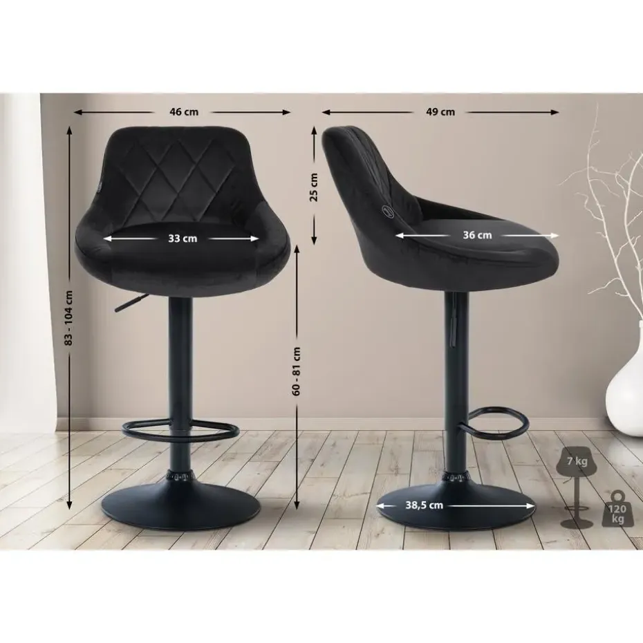 Deze barkruk maakt indruk met zijn stijlvolle ontwerp. De zitting is bekleed met stof en afgewerkt met uitgebreide sierstiksels. Met behulp van de gasveer kan dit model traploos op de gewenste hoogte worden ingesteld, zodat hij bij uitstek geschikt is voor elke barhoogte. De voetsteun, die voor een uitstekend zitcomfort zorgt, kan synchroon met de hoogte van de zitting worden ingesteld. De zitting kan samen met de voetsteun 360° worden gedraaid. Het frame is van metaal en er zitten vloerbeschermers onder de trompetvoet om krassen op de vloer te voorkomen.