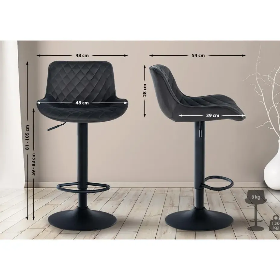 CLP Barkruk Minosa zwart Frame – Fluweel – zwart