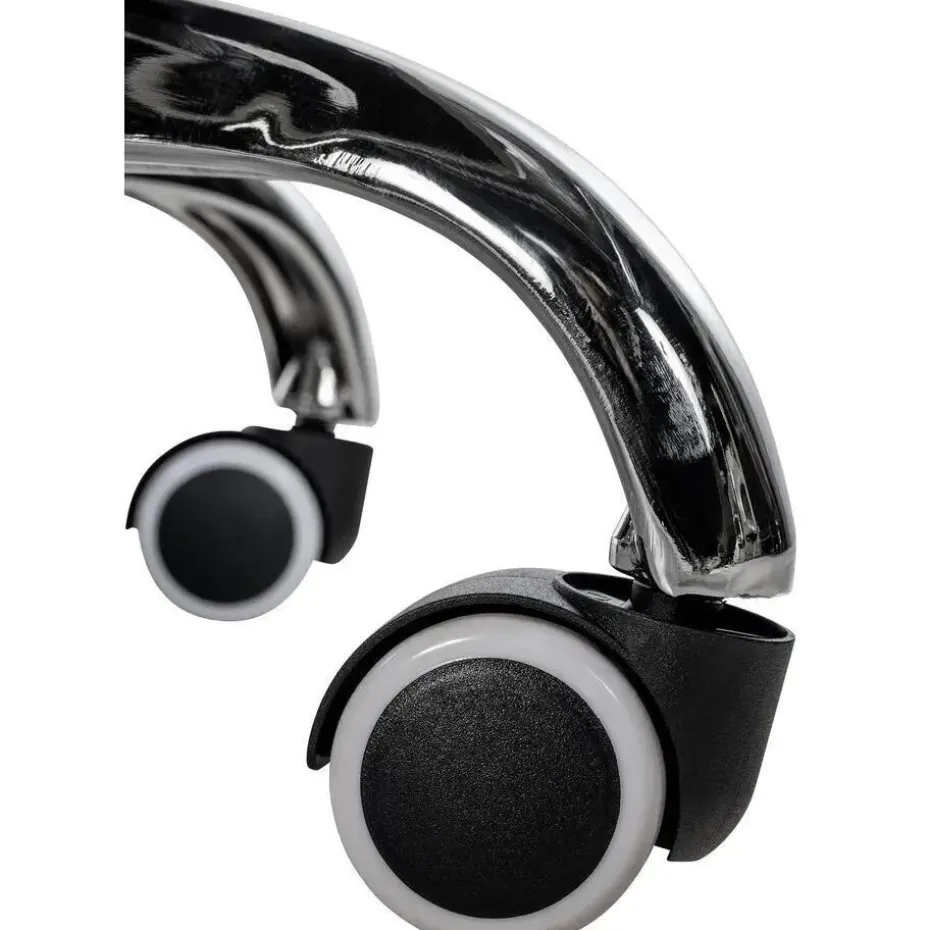 Het elegante verchroomde frame en de stabiele, gebogen armleuningen met kunstlederen bekleding maken het geheel net dat beetje extra en ronden het ontwerp af.