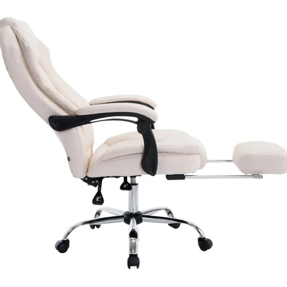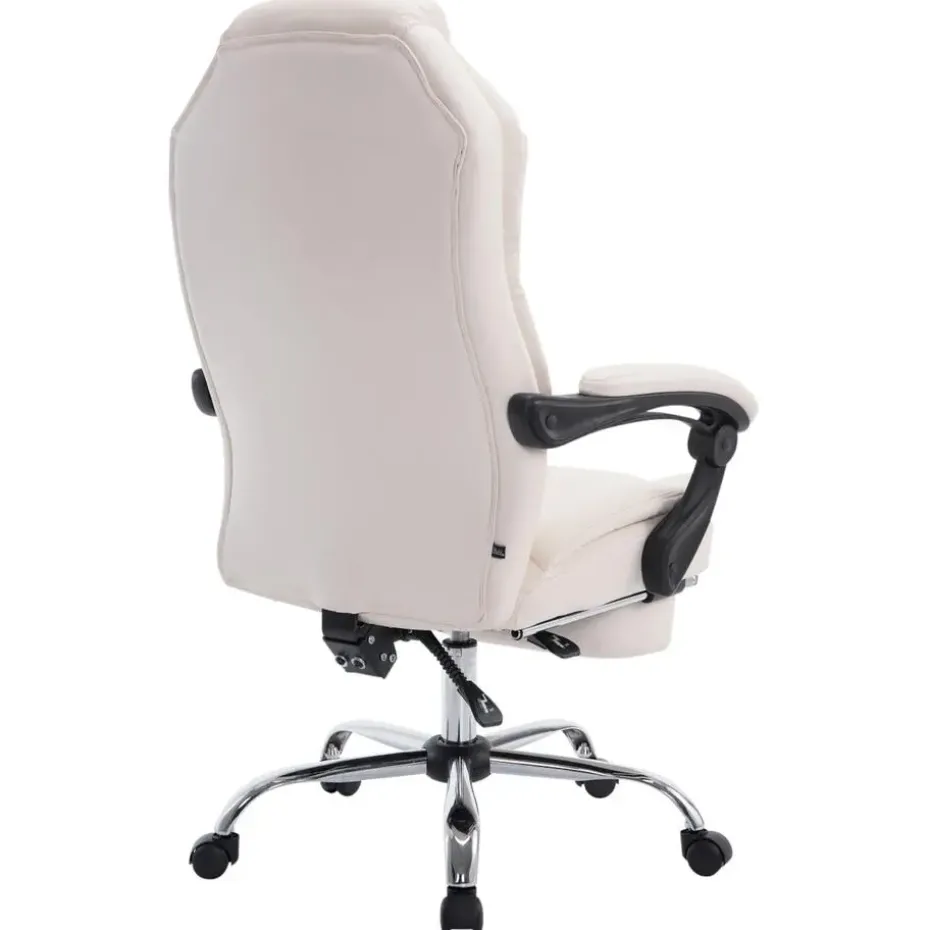 Met de bureaustoel Castle wordt gezelligheid in de klassieke look aangekondigd. Een hoogwaardige bekleding en een onderhoudsvriendelijke kunstlederen hoes zorgen voor een comfortabel zitervaring, dat zelfs bij langdurig verblijf aanhoudt. De gemakkelijk instelbare voetsteun en rugleuning zorgen ook voor een aangename pauze tussendoor, zodat u achterover kunt leunen en uw benen kunt ontspannen. Dankzij de traploos verstelbare zithoogte garandeert de bureaustoel Castle ook altijd ergonomische stoelen. Hij staat stabiel op vijf lichtgewicht zwenkwielen en een frame van metaal in chroomlook.