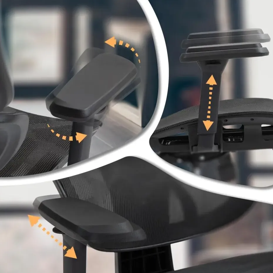 De rugleuning heeft een verstelbaar kantelmechanisme, een verende lendensteun en een hoofdsteun die ook versteld kan worden. De netbespanning over de zitting, rugleuning en hoofdsteun is ademend. De armleuningen ontlasten nek en schouders en zijn driedimensionaal verstelbaar (in hoogte verstelbaar, naar voren/achteren, draaibaar).