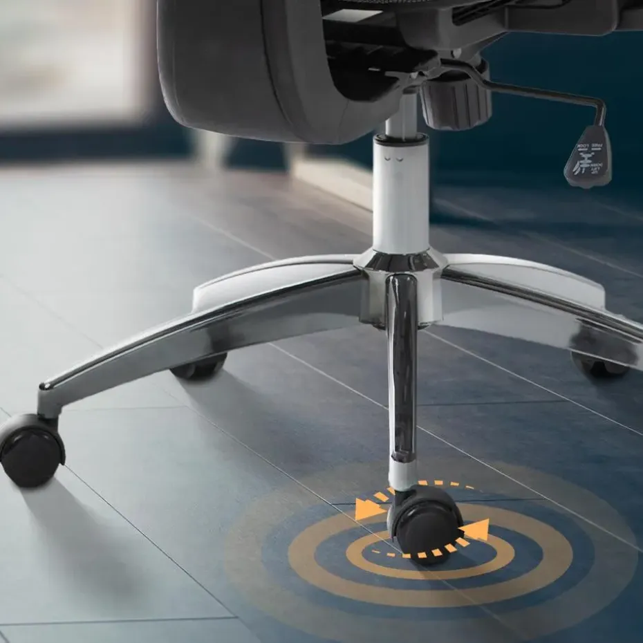 De bureaustoel is traploos in hoogte verstelbaar met behulp van de hoogwaardige gasveer. Tot slot geeft het extreem robuuste frame met lichtlopende wielen de bureaustoel een stabiele basis. Het maximale draagvermogen is 135 kg.