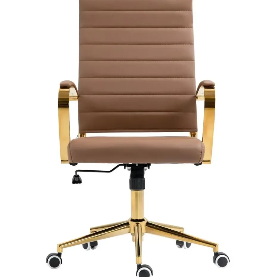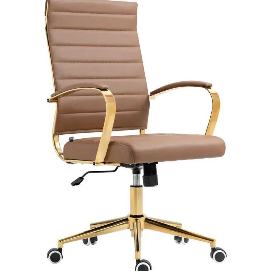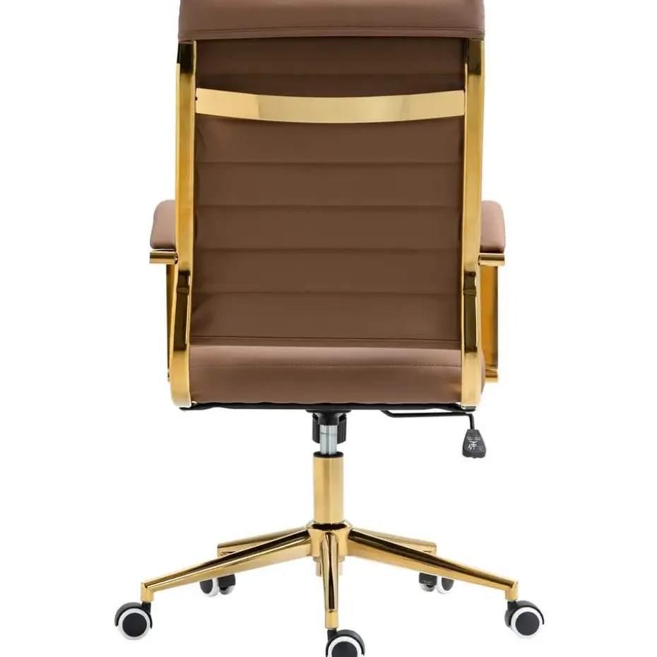 De robuuste constructie zorgt voor een hoge stabiliteit en een maximale belastbaarheid van 136 kg. De stijlvolle gouden look en de rubberen lichtlopende wielen beschermen je vloer en voegen een vleugje elegantie toe aan je kantoor.