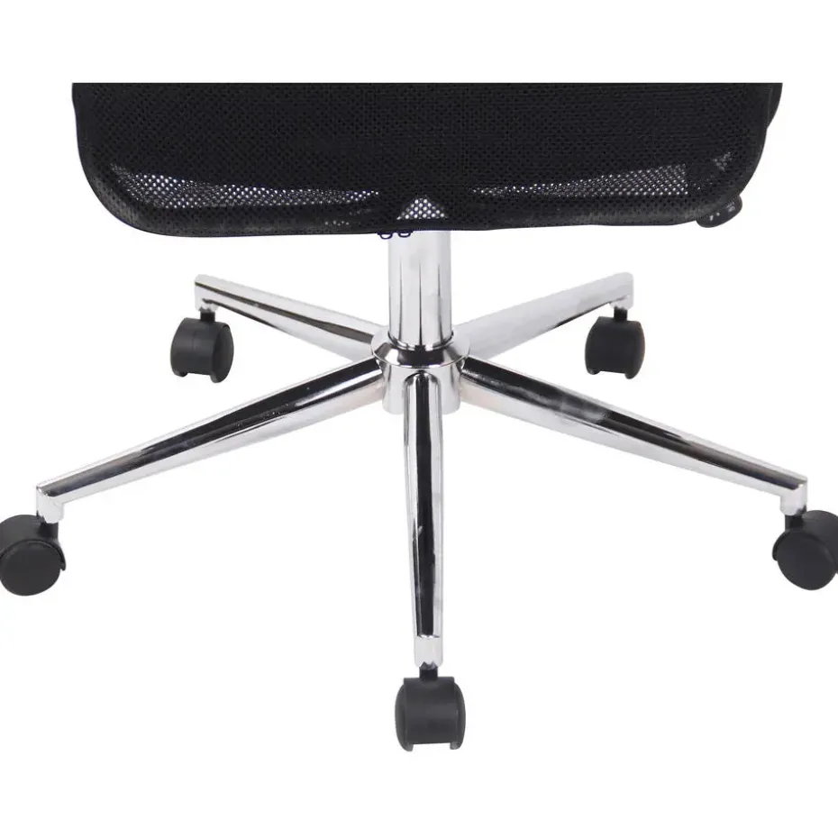 Deze bureaustoel overtuigt door zijn moderne design en solide afwerking. Het zitcomfort wordt verzekerd door de bekleding en de ergonomische rugleuning. De traploze hoogteverstelling en het kantelmechanisme maken comfortabel zitten mogelijk, zelfs gedurende meerdere uren. Bovendien heeft deze bureaustoel een gemakkelijk te onderhouden netbespanning die er niet alleen goed uitziet, maar ook bijzonder goed ademend is. De stoel staat stevig op vijf wielen en een metalen frame in chroomlook.