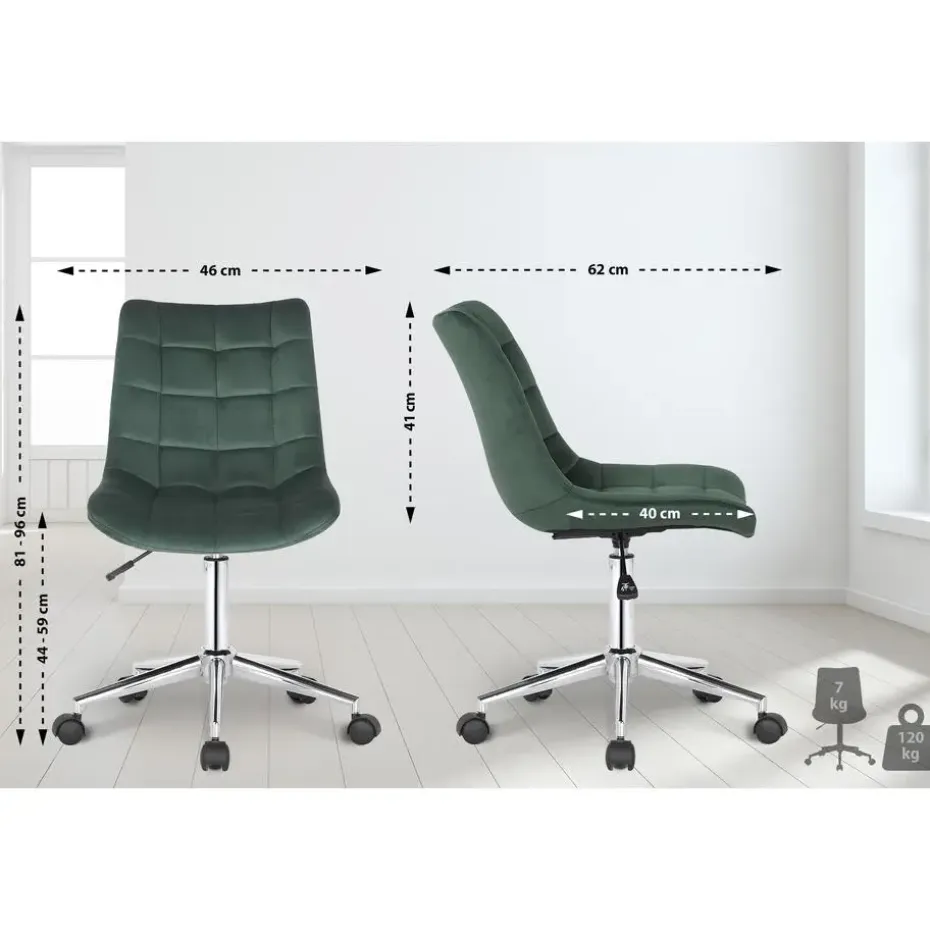 De bureaustoel Medford overtuigt niet alleen door zijn moderne uiterlijk, maar ook op het gebied van comfort kan niemand hem voor de gek houden. De bureaustoel heeft een fluwelen bekleding en is daardoor bijzonder gemakkelijk schoon te maken. Bovendien is de zithoogte traploos instelbaar en garandeert ergonomisch zitten. De stabiliteit wordt gegarandeerd door het metalen frame in chroomlook.