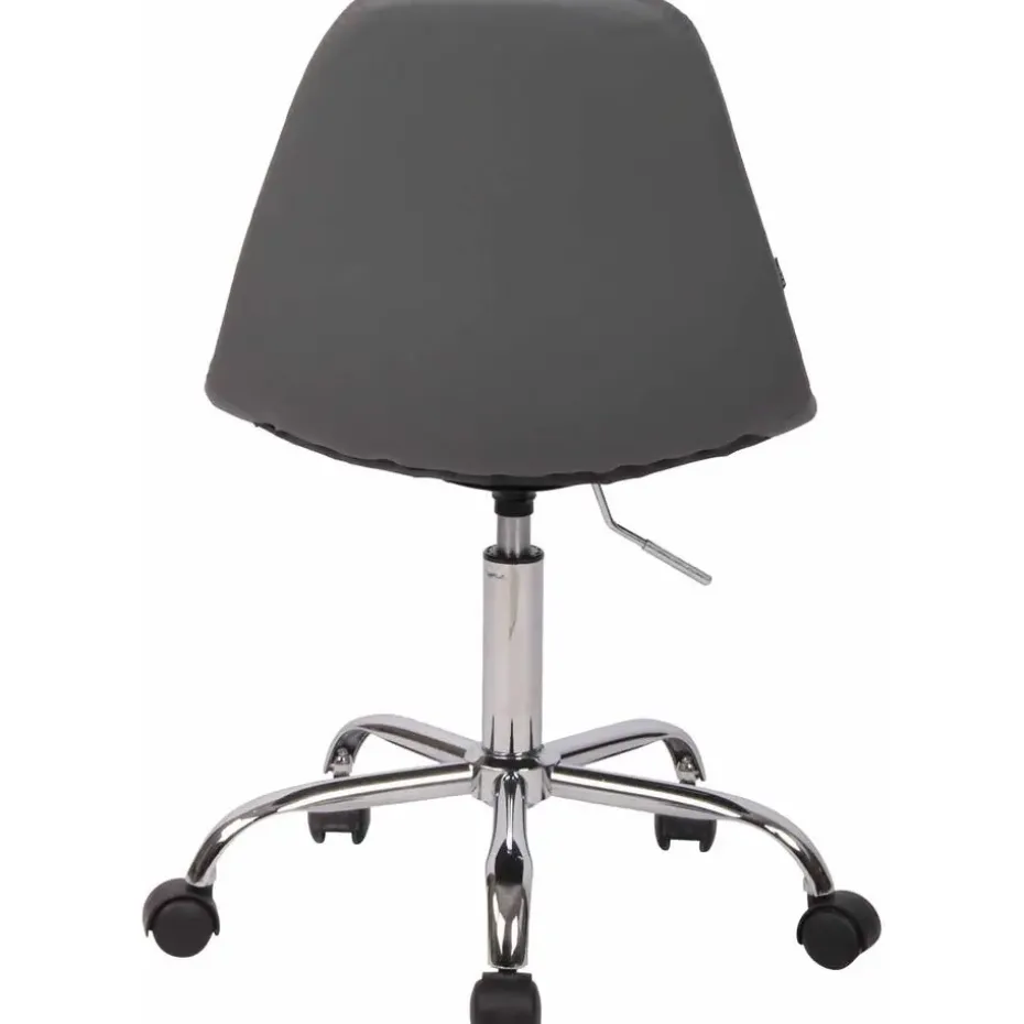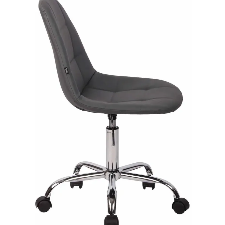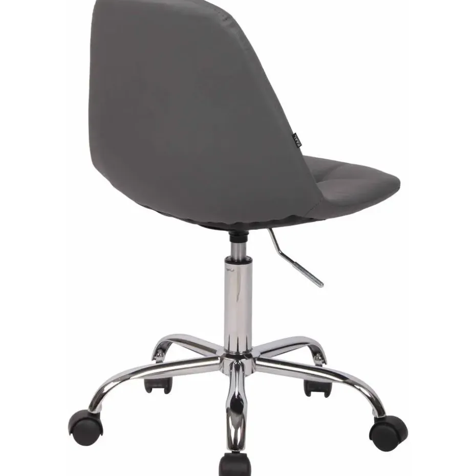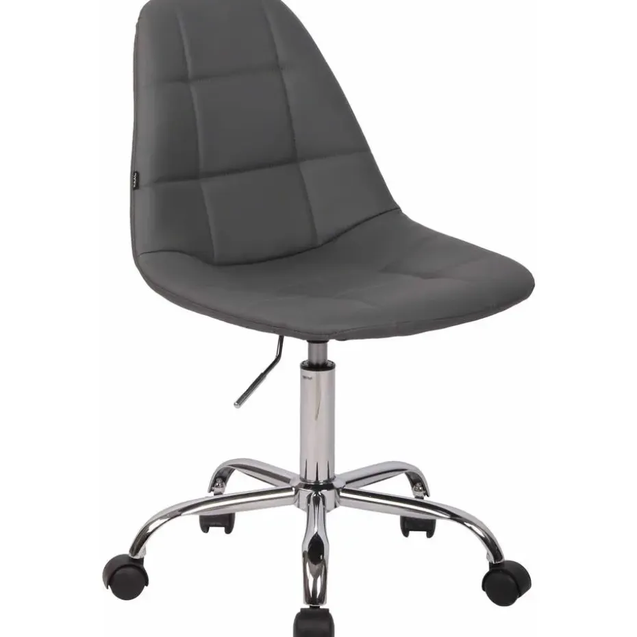 De bureaustoel Reims maakt indruk met zijn comfortabele bekleding en een slank uiterlijk. De rechthoekige decoratieve stiksels en heldere kleuropties maken de bureaustoel Reims een visueel hoogtepunt op elke werkplek. De hoogwaardige zit is bedekt met een kunstlederen bekleding en dankzij een traploos verstelbare zithoogte is een ergonomische zitting gegarandeerd. Hij staat stabiel op vijf lichtgewicht zwenkwielen en een frame van metaal in chroomlook. Het praktische ontwerp maakt het geschikt voor kleinere ruimtes en flexibel in gebruik. Of het nu harde of zachte ondergrond is, u zult altijd gemakkelijk en losjes over de vloer kunnen verplaatsen. De bureaustoel wordt gedemonteerd geleverd.