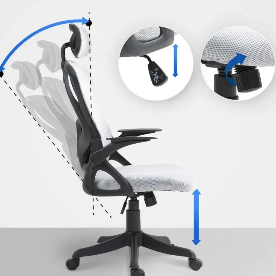 De bureaustoel dankt zijn hoge zitcomfort aan de vele ergonomische functies: De rugleuning heeft een verstelbaar schommelmechanisme, een lendensteun en een hoofdsteun die ook versteld kan worden. De netbespanning over de rugleuning en hoofdsteun is ademend. De armleuningen ontlasten de nek en schouders en kunnen ook worden opgeklapt.