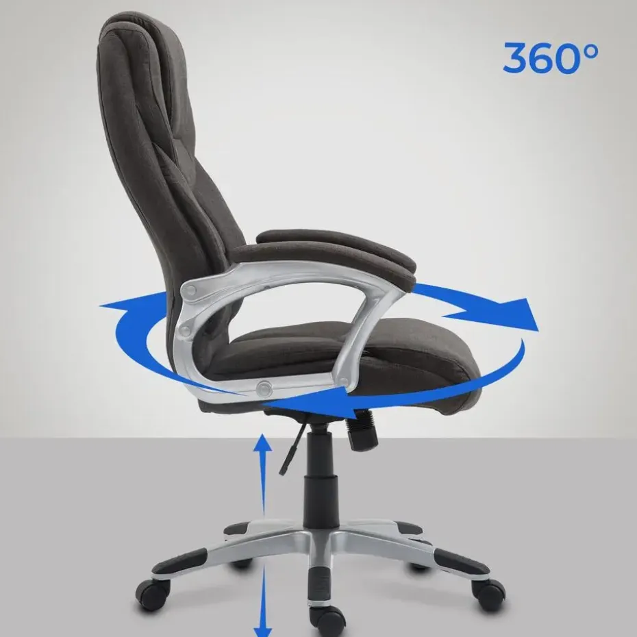 Bureaustoel Texas laat niets te wensen over als het gaat om comfort. Met zijn ergonomisch gevormde rugleuning en traploos instelbare zithoogte is een comfortabele zithouding gegarandeerd. Bewegingsvrijheid wordt mogelijk gemaakt door het ingebouwde kantelmechanisme. De hoogwaardige stoffering en de onderhoudsvriendelijke stoffen bekleding overtuigen bovendien door een lange levensduur. De bureaustoel staat stevig op vijf licht lopende wieltjes en een kunststof frame in metaallook.