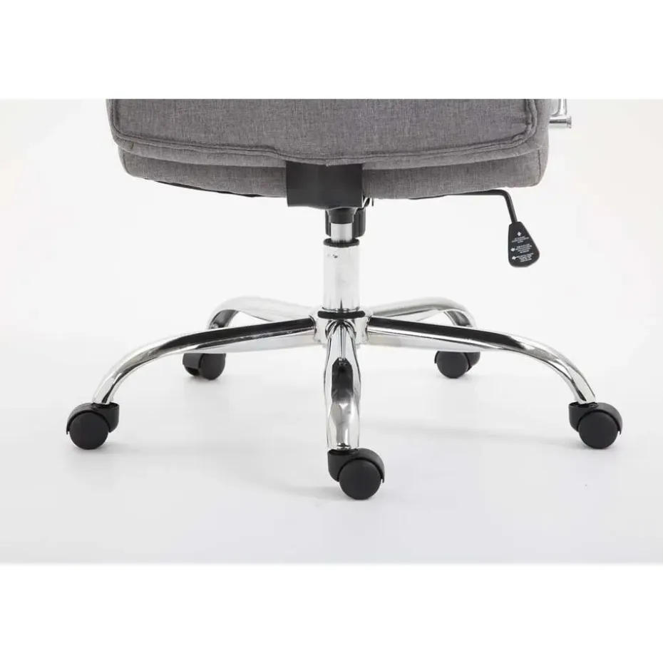 De bureaustoel XL Valais is ideaal voor lange en zwaardere mensen, omdat de gasveer is ontworpen voor langdurig gebruik tot 136 kg. Het is een bureaustoel met hoogwaardige stoffen bekleding. De zithoogte is traploos instelbaar met de hendel onder de stoel, waardoor ergonomisch zitten gegarandeerd is. Het ingebouwde kantelmechanisme zorgt ook voor meer bewegingsvrijheid. Het frame van de bureaustoel XL Valais is gemaakt van metaal in chroomlook. Stabiel staat hij op vijf stevige plastic zwenkwielen.