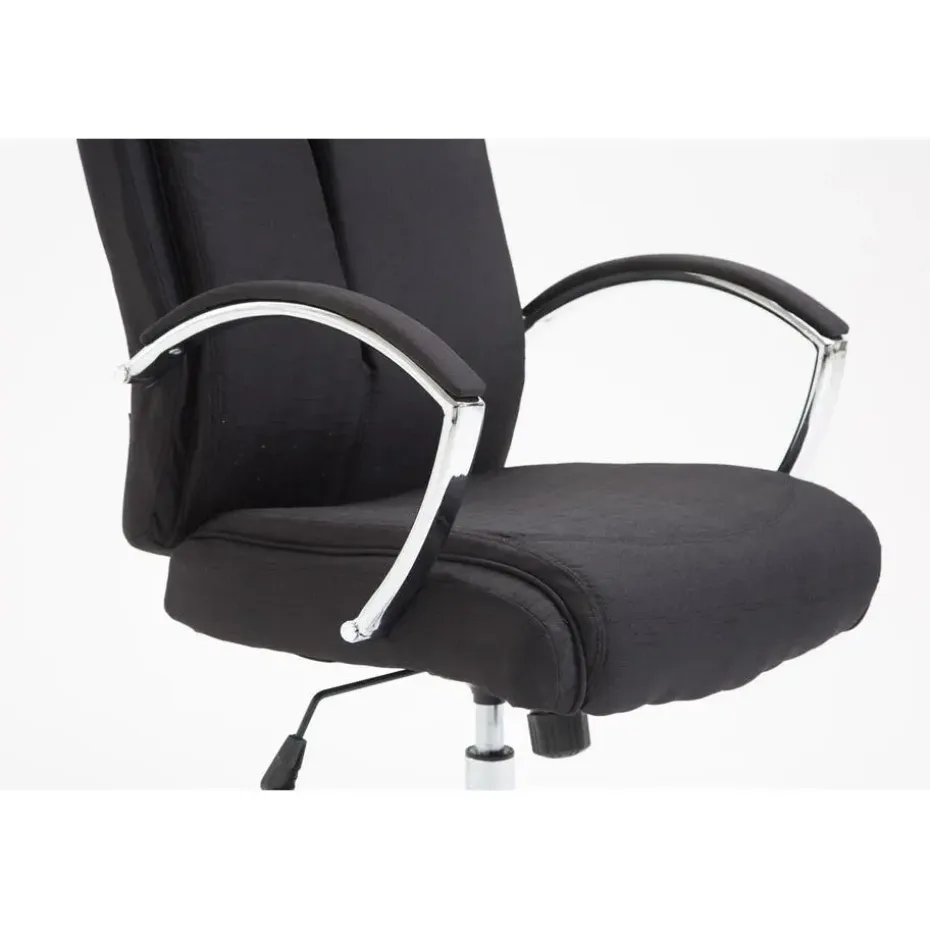 De bureaustoel XL Vaud is ideaal voor lange en zware personen, omdat de gasveer is ontworpen voor permanent gebruik tot 140 kg. Het is een bureaustoel met een hoogwaardige stoffen bekleding. De zithoogte is traploos instelbaar met de hendel onder de stoel, waardoor ergonomisch zitten gegarandeerd is. Het ingebouwde kantelmechanisme zorgt voor meer bewegingsvrijheid. Het frame van de bureaustoel is gemaakt van metaal in chroomlook. Stabiel staat hij op vijf stevige kunststof zwenkwielen.