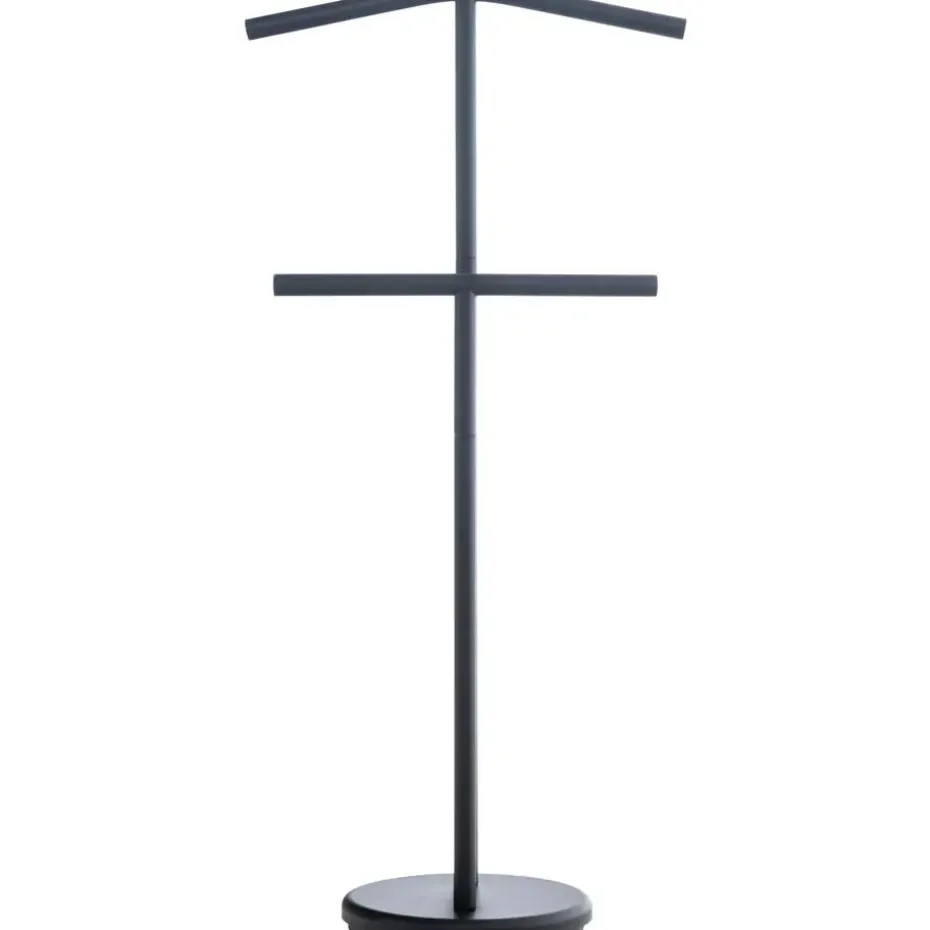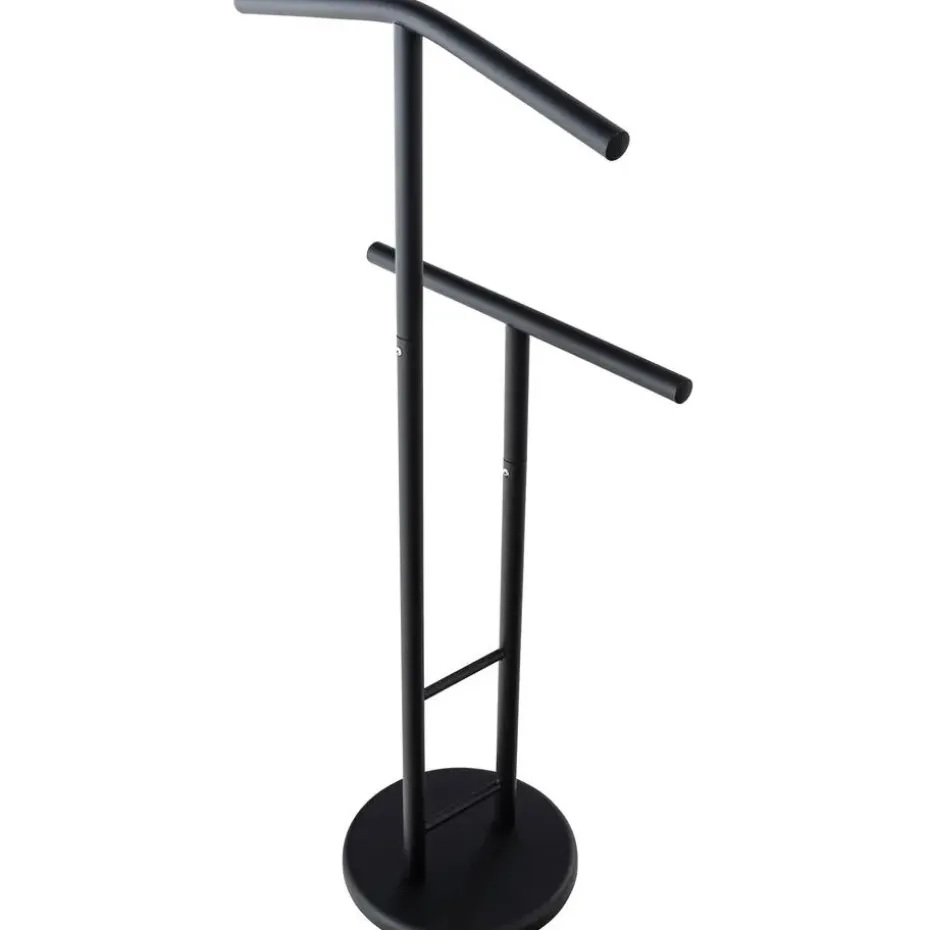 Stijlvol kledingrek in metaal in chroomlook, eenvoudig in zwart of wit. De twee staven bieden voldoende ruimte voor uw kleding. De zware voet zorgt voor extra standvastigheid.