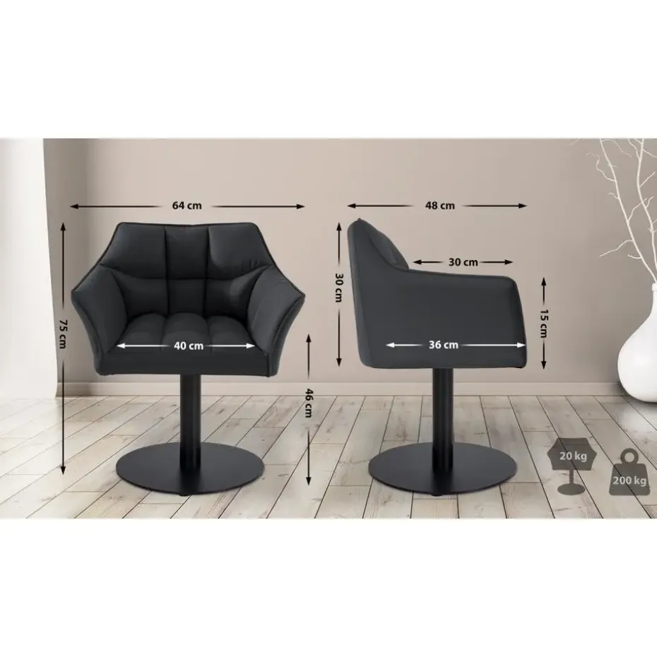 De loungestoel Damaso scoort met zijn eigentijdse zitcomfort en geeft elke kamer een exclusieve uitstraling! De rugleuning, armleuningen en bekleding maken van deze clubfauteuil een gezellige plek om te zitten. De robuuste metalen voetplaat zorgt voor een hoge stabiliteit en is voorzien van vloerbeschermers om uitglijden en krassen op de vloer te voorkomen. Of het nu in de woonkamer of logeerkamer, kantoor, serre of eetkamer is – de Damaso eetkamerstoel past harmonieus in elke omgeving.