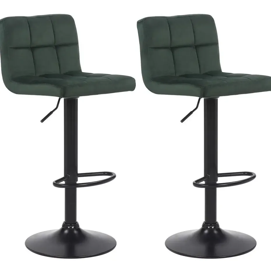 Deze set barkrukken mixt modern design met gezelligheid voor een geslaagde avond. De zetels zijn aangenaam gestoffeerd en hebben een fijne fluwelen bekleding. De hoogte van de barkrukken kan worden aangepast aan elke lichaamslengte. Een trompetvoet van matzwart metaal geeft elke barkruk een stabiele steun. Het frame is ook uitgerust met een stijlvolle voetsteun, die voor nog meer comfort zorgt. De moderne barkrukenset presenteert zich in een goede stemming in blauw, grijs, groen, roze, zwart, bruin, rood en geel.