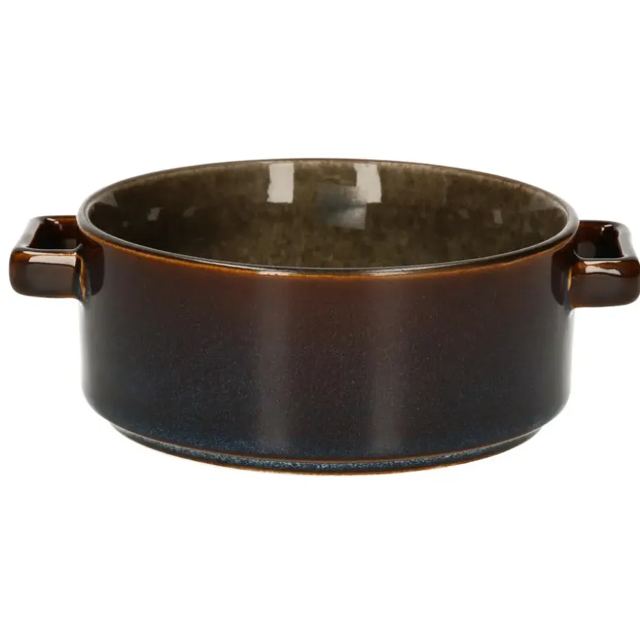 Kommetjes/soepkommen/schaaltjes voor o.a. dessert, soep en ontbijt. Gemaakt van stevig geglazuurd luxe porselein in de kleuren groen/bruin. Afmeting: D13 x 5.5 cm/450 ML. Handige stapelbare kommetjes voor in elk huishouden. Ontbijtschaaltjes, soepkommen. Merk: Cosy & Trendy.