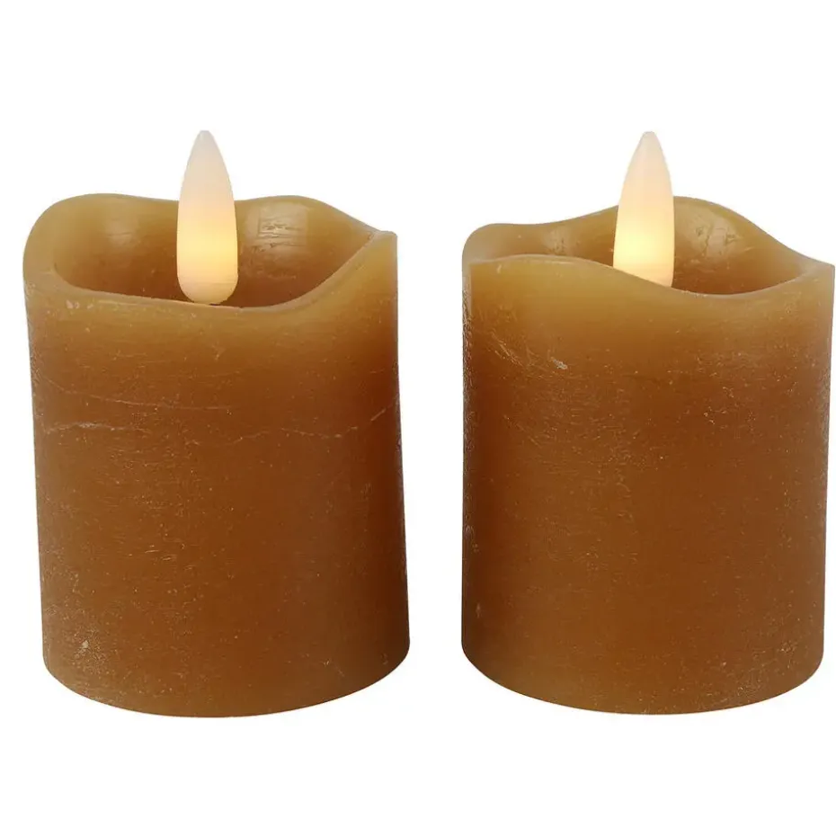 Countryfield LED kaarsen/stompkaarsen 2x stuks in de kleur cognac bruin (amber). De Countryfield LED kaarsen zijn elegante en stijlvolle kaarsen met een warm wit licht. Deze LED kaarsen hebben een afmeting van D5 x H7,2 cm. Voorzien van een timer, waarmee je de verlichting kunt instellen op een tijd die je wilt. Ze zijn veilig te gebruiken omdat ze geen echte vlam hebben. Geschikt voor binnen. 1 CR2032 batterij inbegrepen. Materiaal: wax.