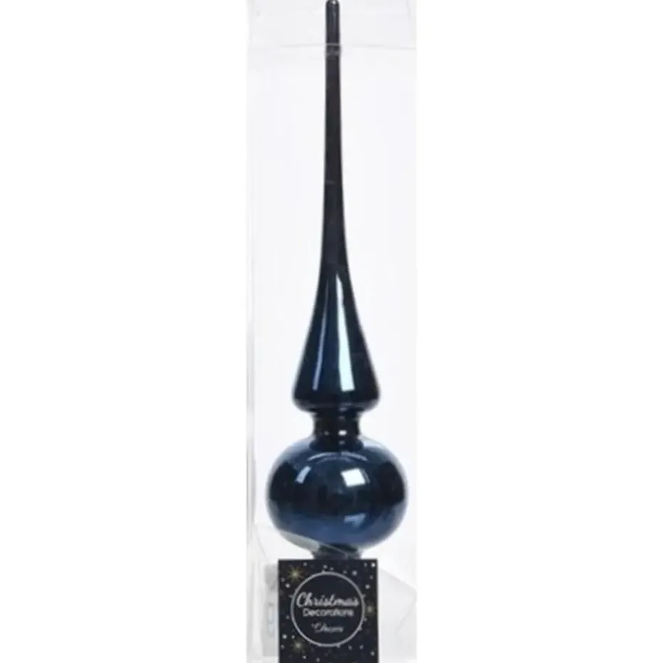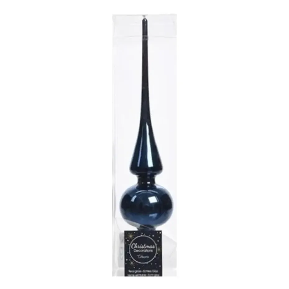 Decoris kerstboom piek donkerblauw glans. Maak je kerstboom compleet met deze chique kerstpiek van Decoris. De glanzende afwerking geeft je kerstdecoratie een elegante en stijlvolle uitstraling.