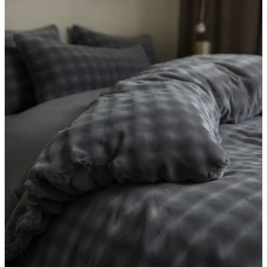 Dekbedovertrek 140x220 – Pompom Design & Warm Flanel Fleece - Antraciet