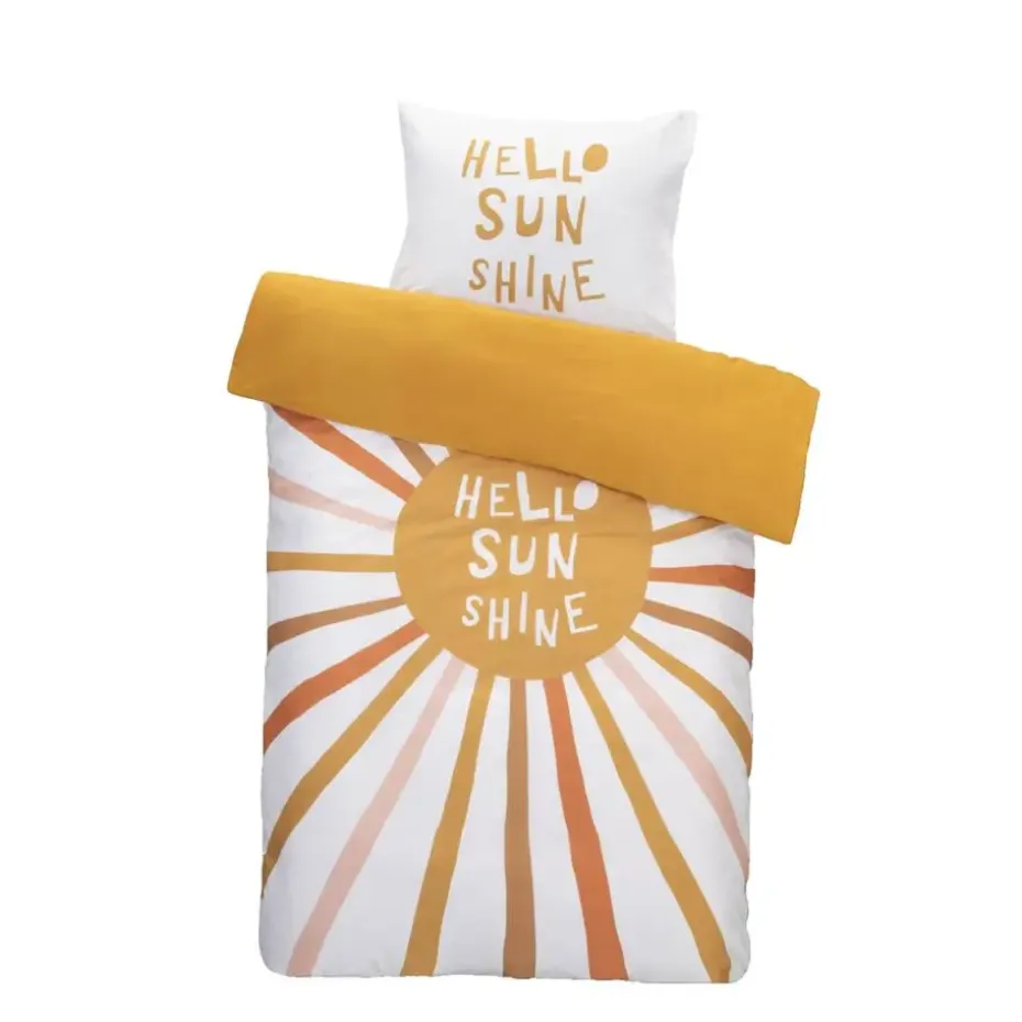 Dekbedovertrek Ella heeft een sunshine thema en een afmeting van 140×200 cm. Het dekbedovertrek is gemaakt van katoen en heeft een flessenhals instopstrook.