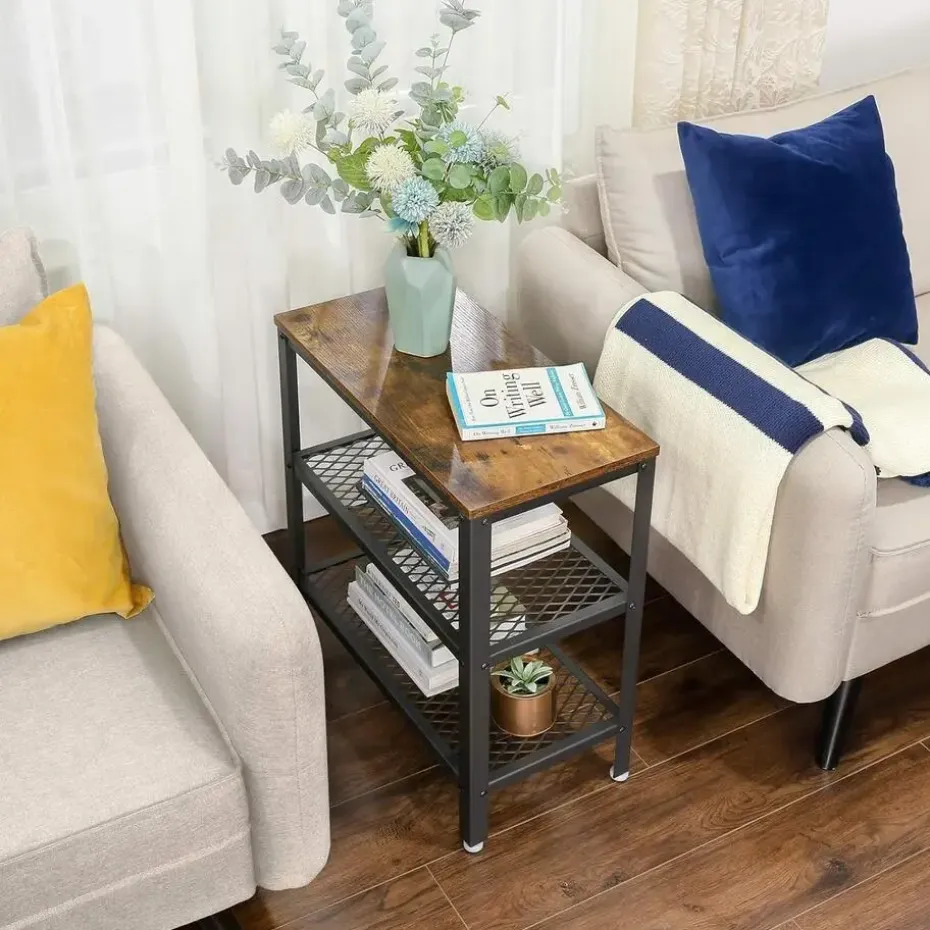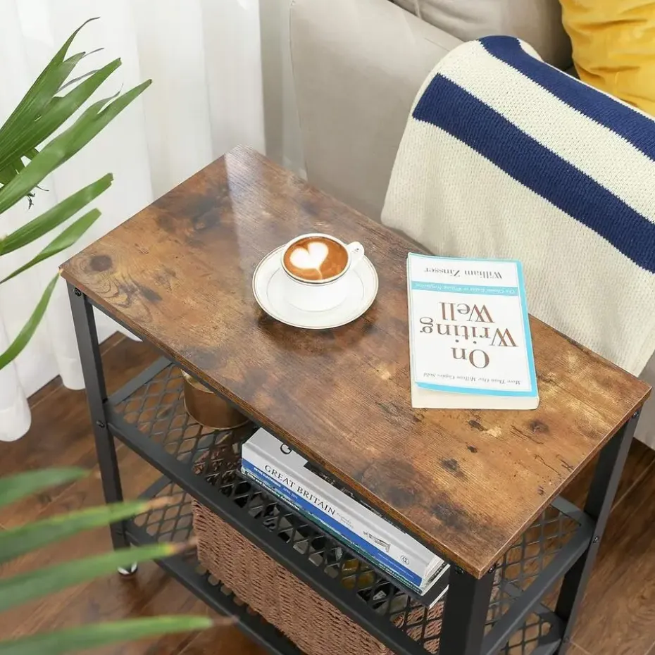 Met deze bijzettafel krijg je 3 opties voor opslag. Het rustieke bruine oppervlak en de twee stevige roosterniveaus bieden ruimte voor boeken, tv-accessoires, brillen, planten en meer. Het is veelzijdig genoeg om in verschillende kamers te passen.