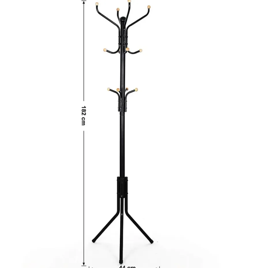 Design Kapstok – 12 Haken – Staande kapstok – 182 cm – Zwart