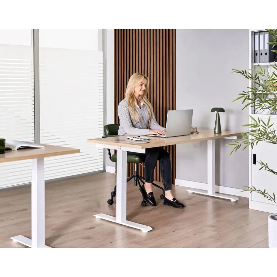 Belangrijkste eigenschappen: Elektrisch in hoogte verstelbaar, Tafelmodel programmeerbaar in 3 verschillende hoogtes, Zachte hoogteverstelling en soepele motoriek dankzij de dubbele motor, Dik tafelblad met hoogwaardige melamine-coating, Hoog draagvermogen, Brede poten voor optimale stabiliteit, USB Oplaadpunt, Anti-botsingssensor voorkomt stoten tegen objecten